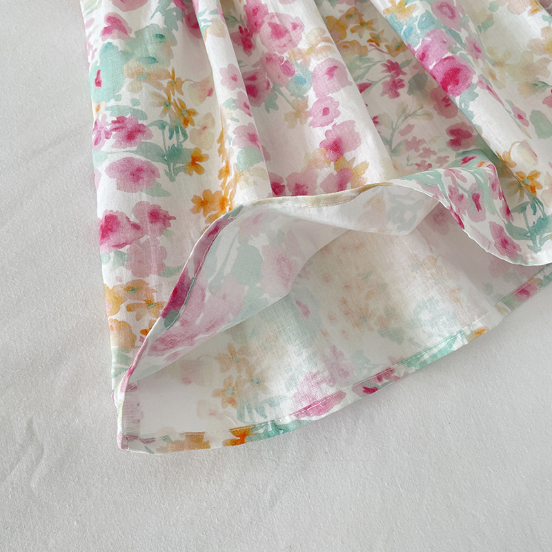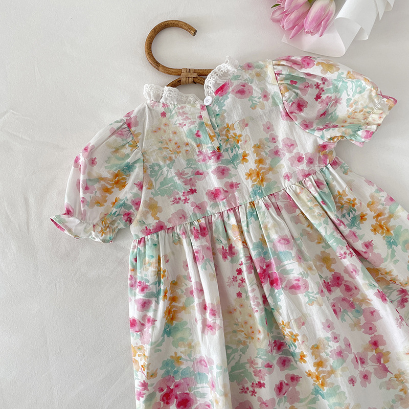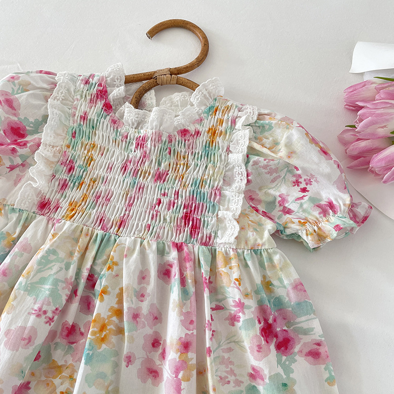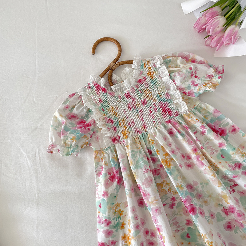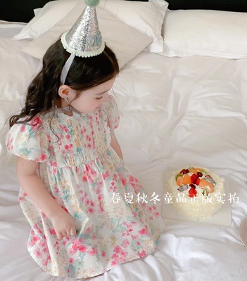 現在カテゴリ:全て商品 > お勧め 春夏新作 韓国風子供服 3-8歳キッズ シフトドレス 花柄 ワンピース レースフリル 半袖ワンピ 90-140