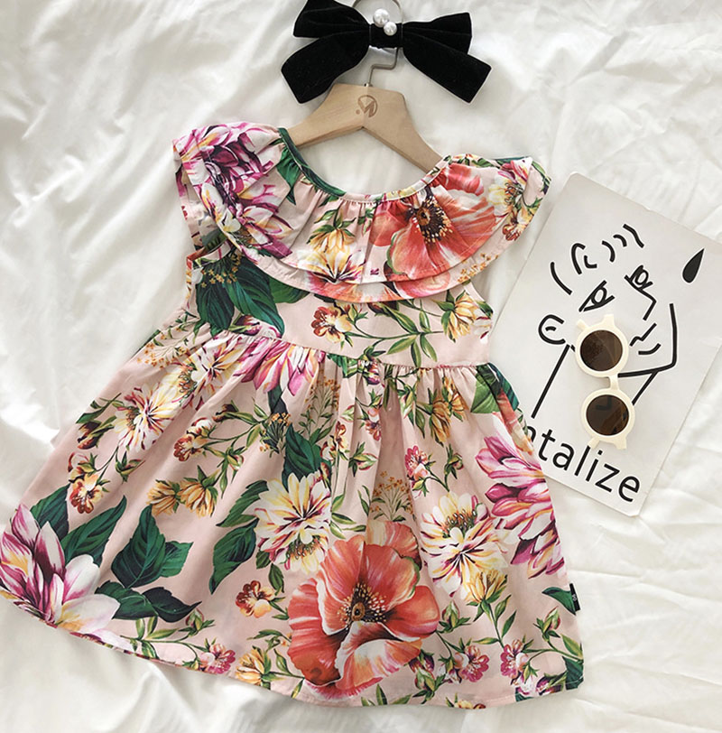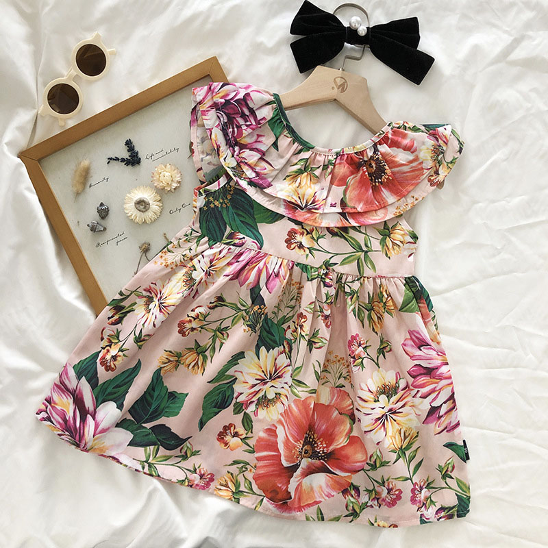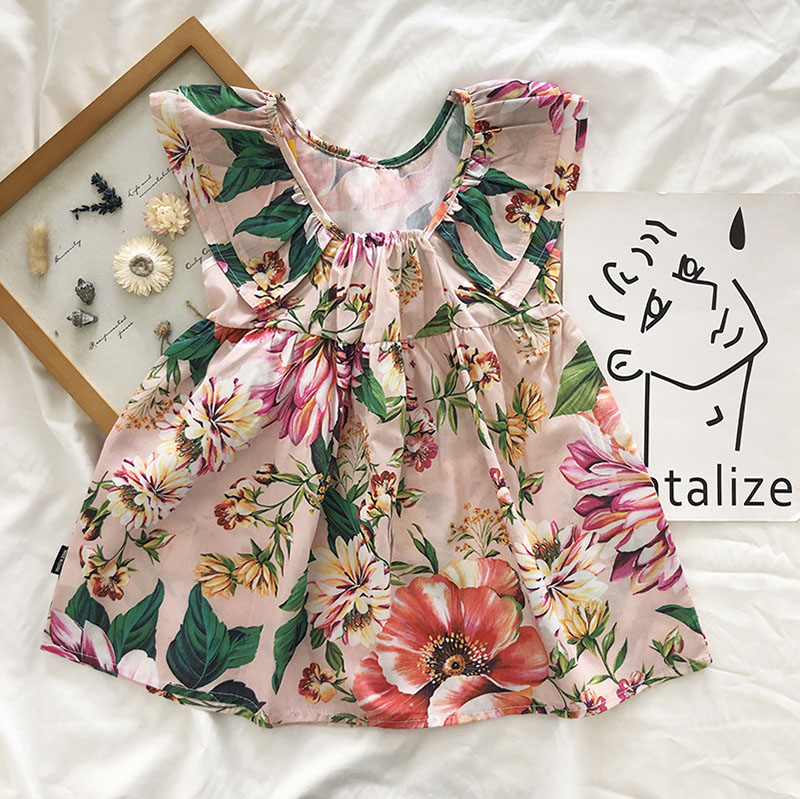 お勧め 春夏新作 韓国風子供服 女の子 袖なし フリル シフトドレス 花柄 ワンピース ワンピ 90-140