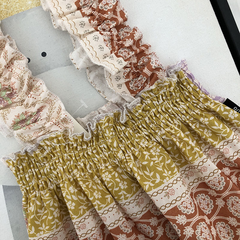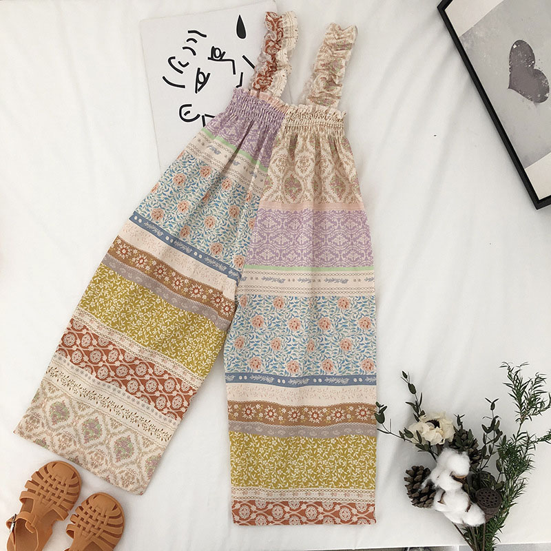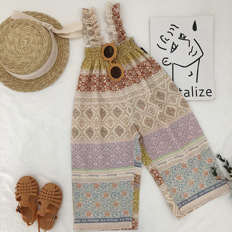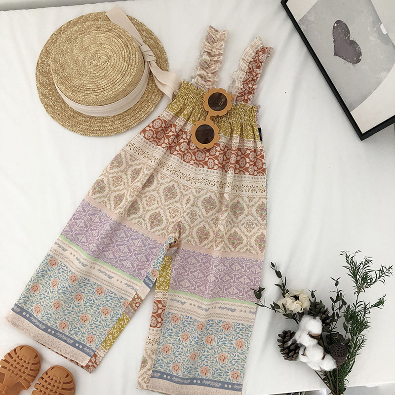 お勧め 韓国風春夏新作 子供服女の子袖なし連体服 エスニック ワイドパンツ 花柄 レトロ 連体ズボン90-140