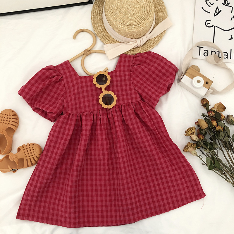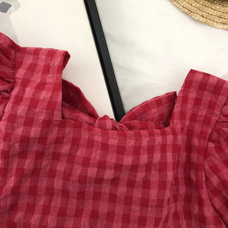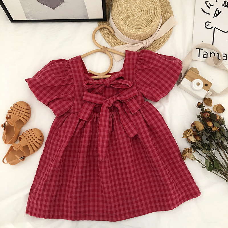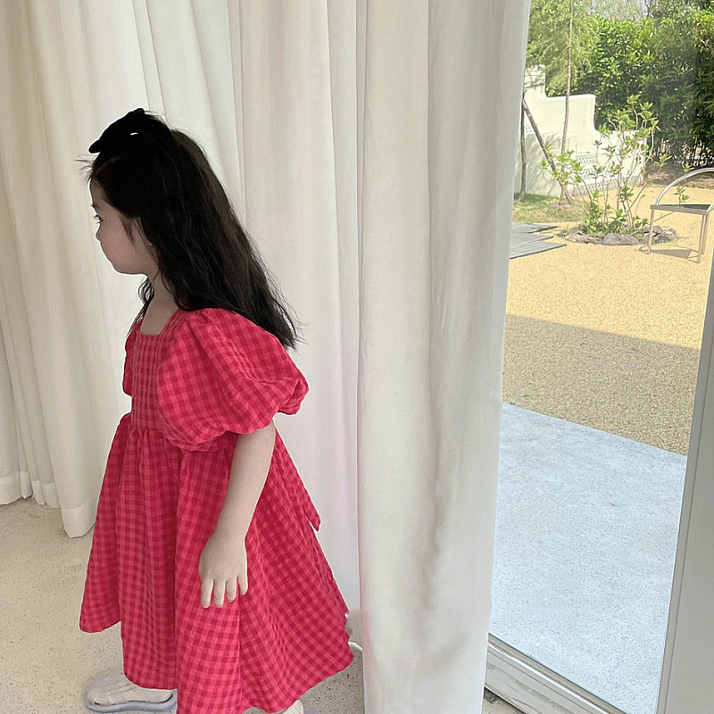 現在カテゴリ:全て商品 > お勧め 春夏新作 韓国風子供服 女の子 リボン パフ・スリーブ ワンピース チェック柄 半袖ワンピ 90-140