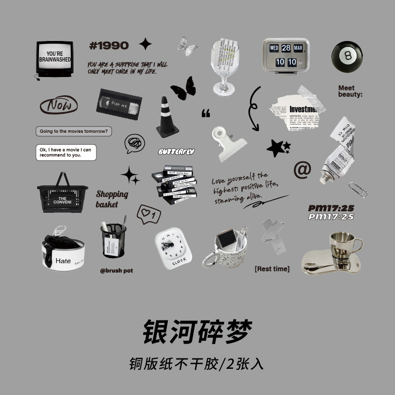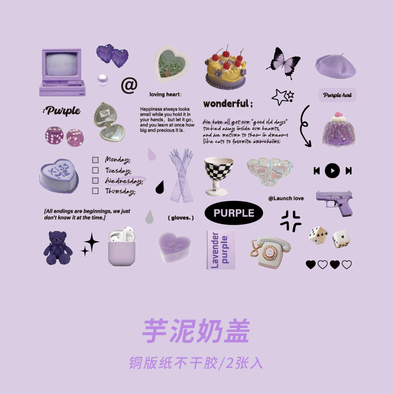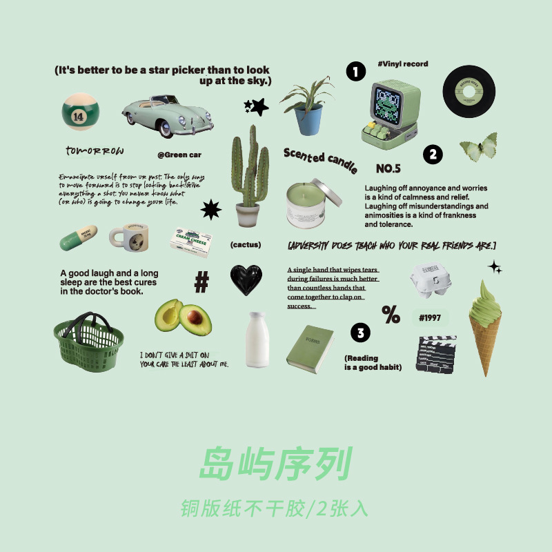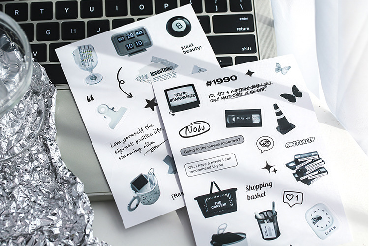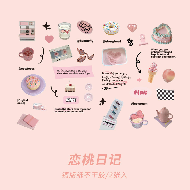 カフェ風 文具 シール貼紙 手帳素材 封口貼 幾何学ラベル イラスト 生活雑貨 食べ物飲み物 写真撮影 2枚入