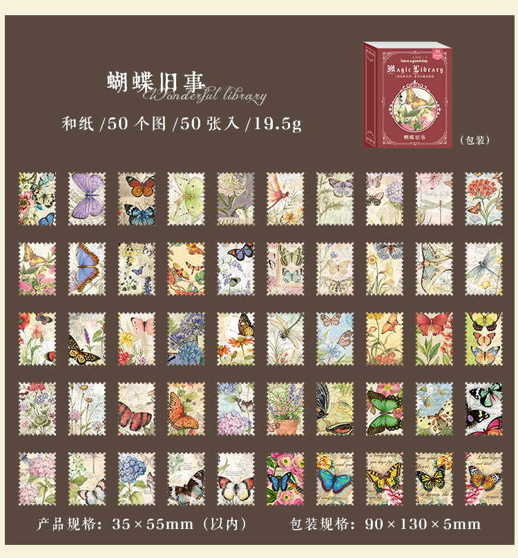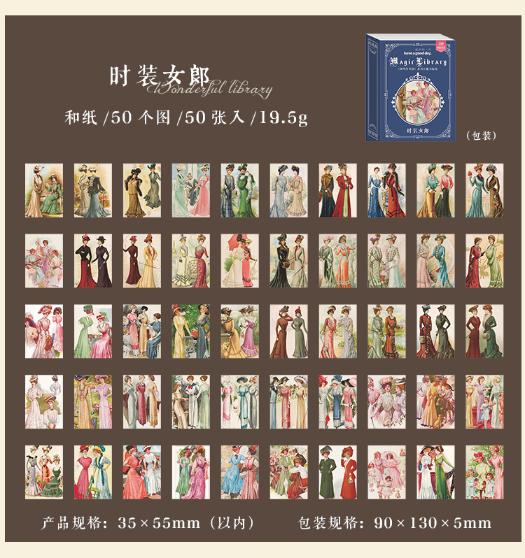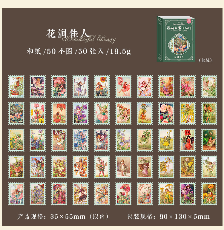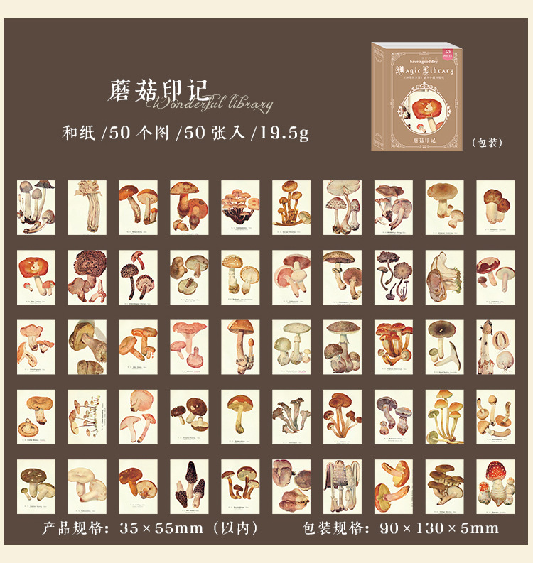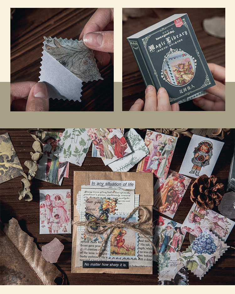 カフェ風 文具 シール貼紙 封口貼 アンティーク 手帳素材 植物花葉キノコ 人物doll 宇宙天体 50枚入
