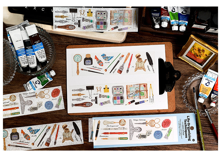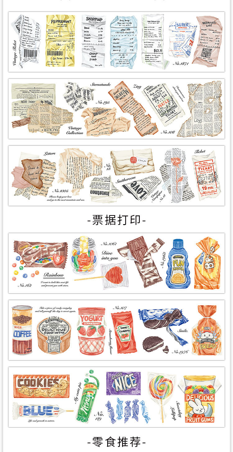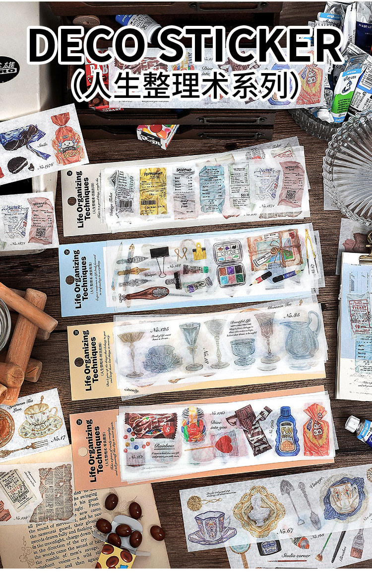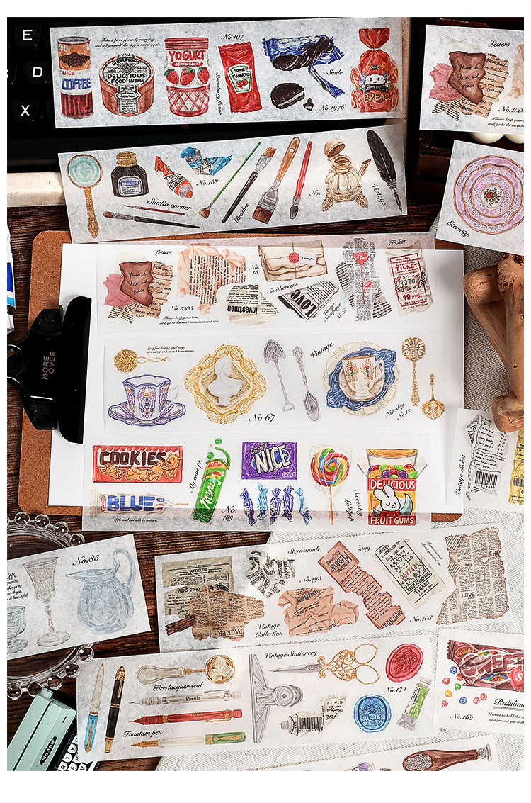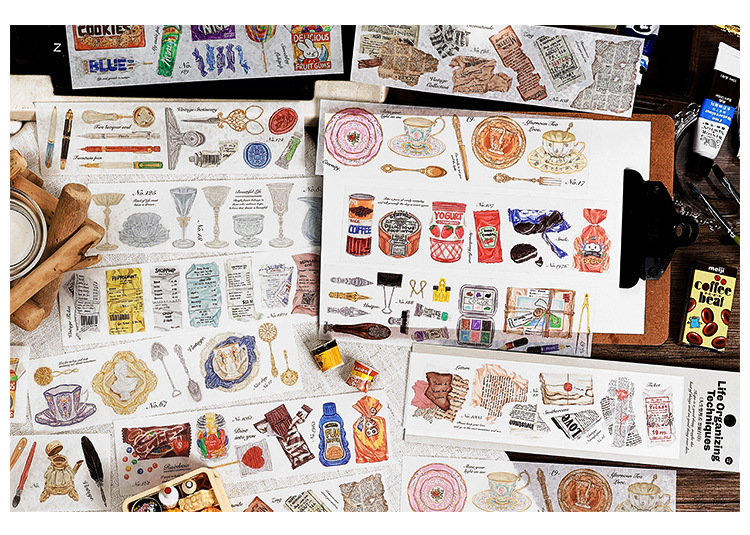 春夏 文具 シール貼紙 封口貼 手帳素材 食べ物 生活雑貨 杯具 文房具 手形 アンティーク 幾何学 6枚入