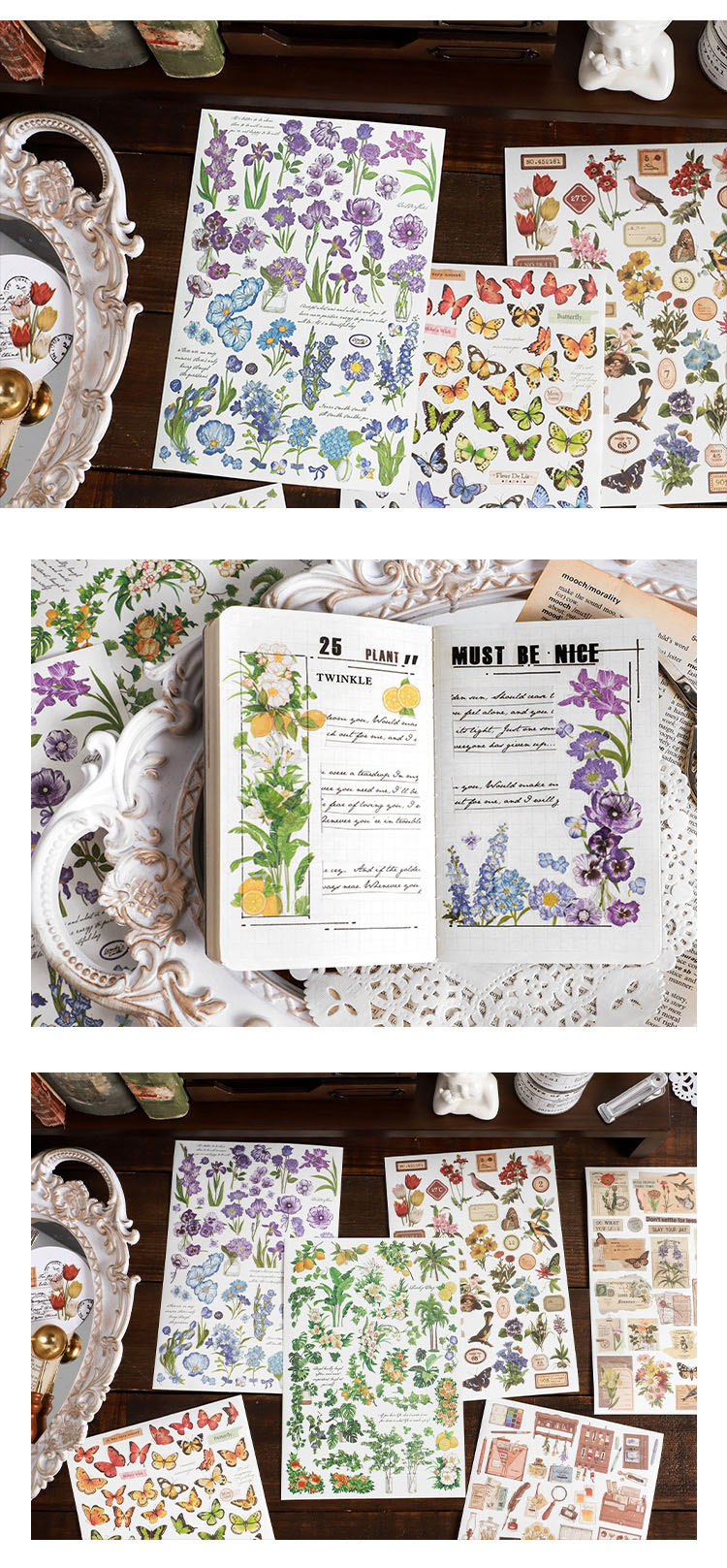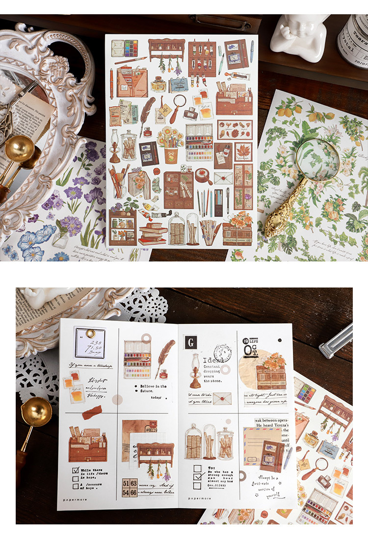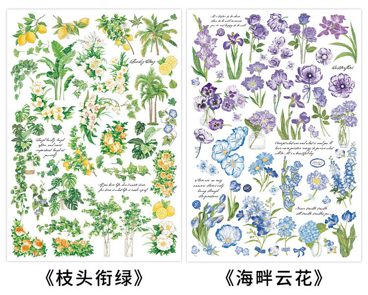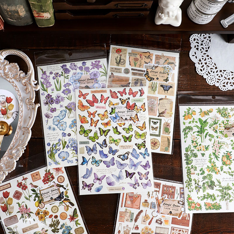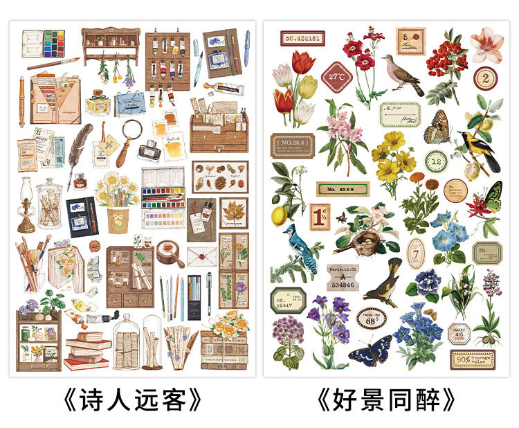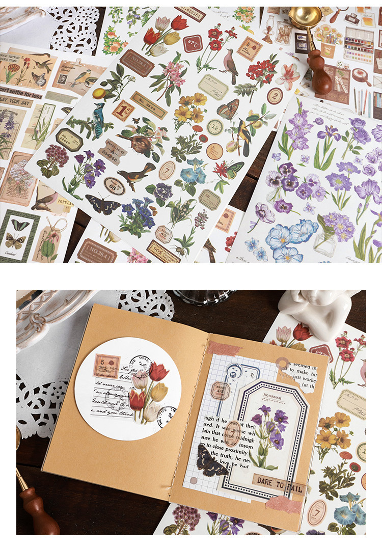 春夏 文具 シール貼紙 封口貼 手帳素材 植物花葉蝶 生活雑貨 鳥 文房具 アンティーク 幾何学 単枚入