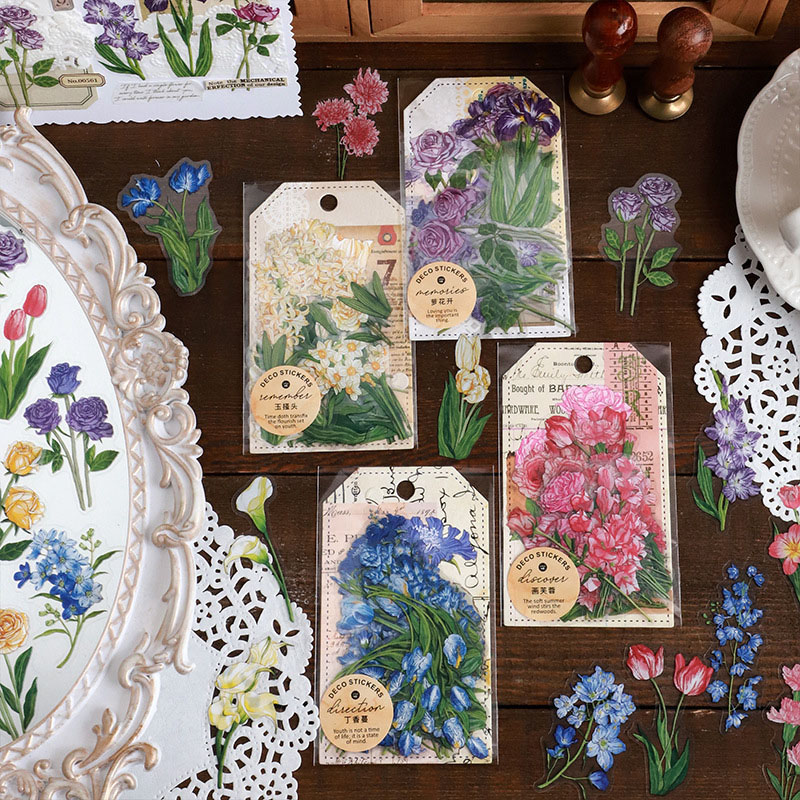 現在カテゴリ:全て商品 > 春夏新作 文具 PETシール貼紙 封口貼 手帳素材 植物図鑑 花フラワー アンティーク 30枚入