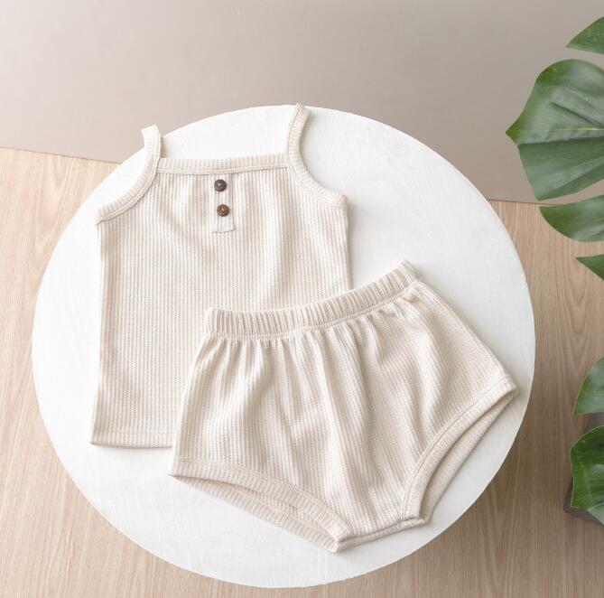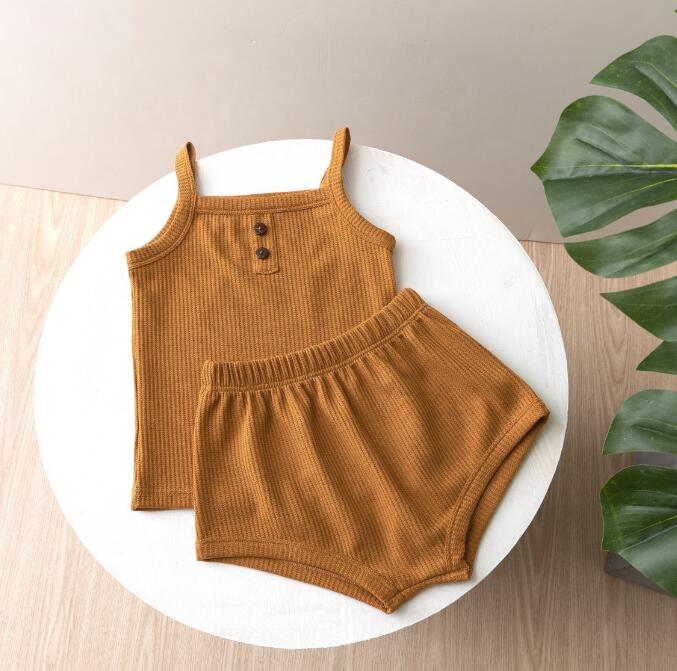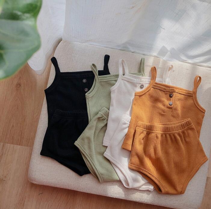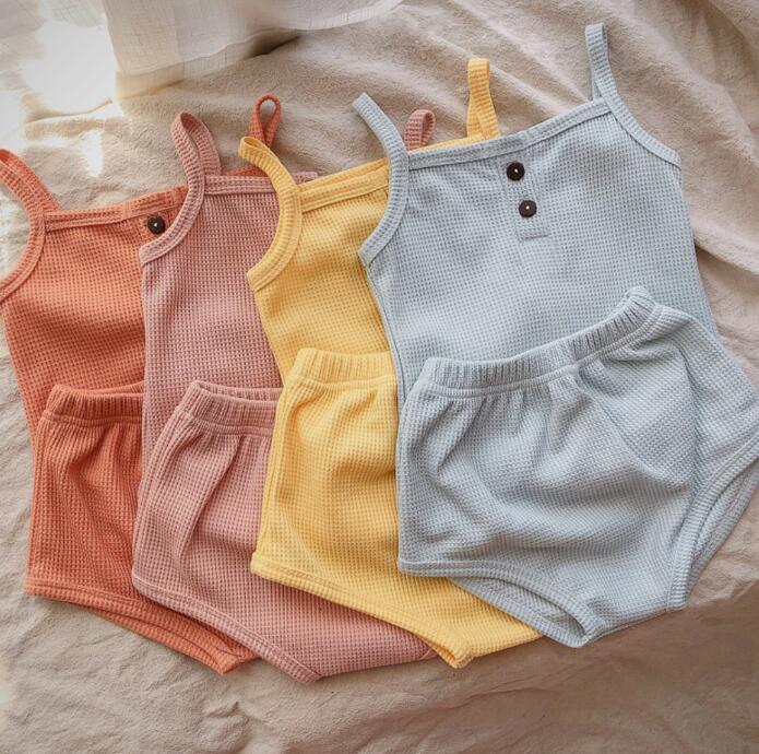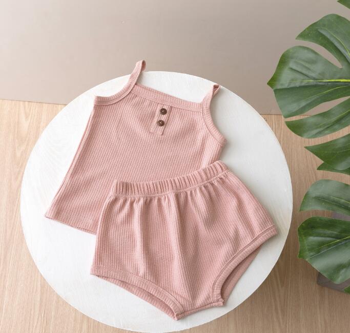 子供服★トップス+パンツ★セットアップ★韓国子供服★ベビー★袖なし★無地★7色★70-100CM