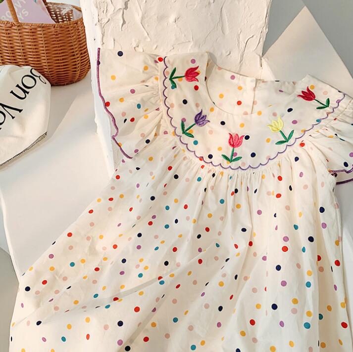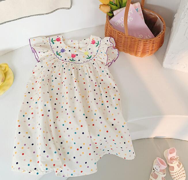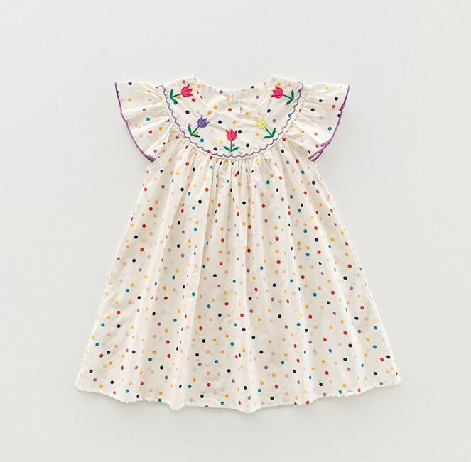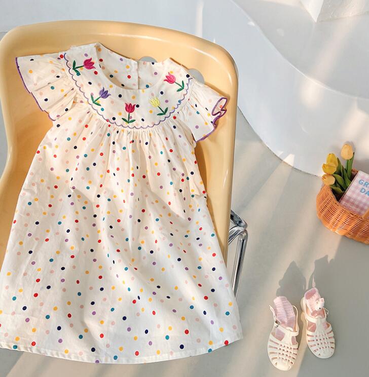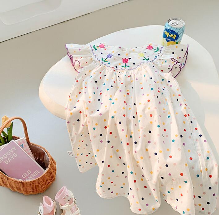 子供服★ワンピース★韓国風子供服★キッズ女の子★刺繍★水玉★90-140CM