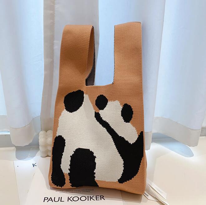 バッグ★レディース★トートバッグ★ハンドバッグ★ニットバッグ★大容量★パンダ★3色