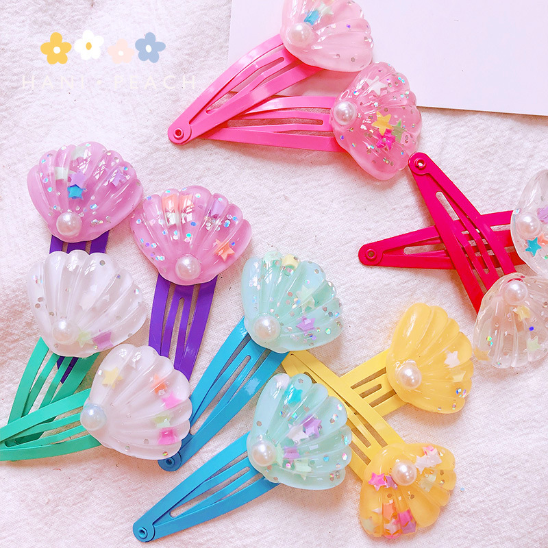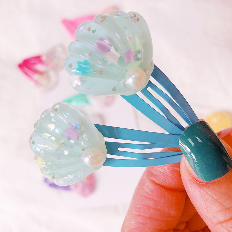 春夏 キッズ用 ガールズ ヘアクリップ ヘアピン 海洋 パール貝殻 アクリル キラキラ 単枚入