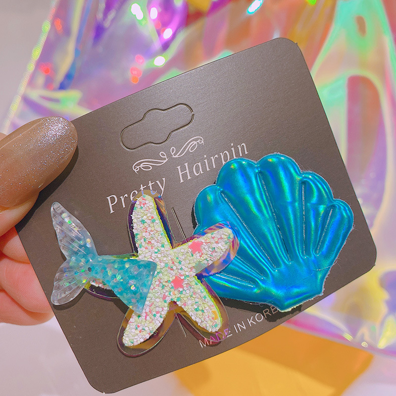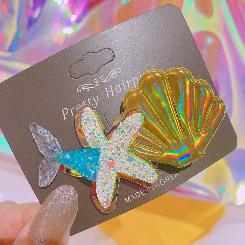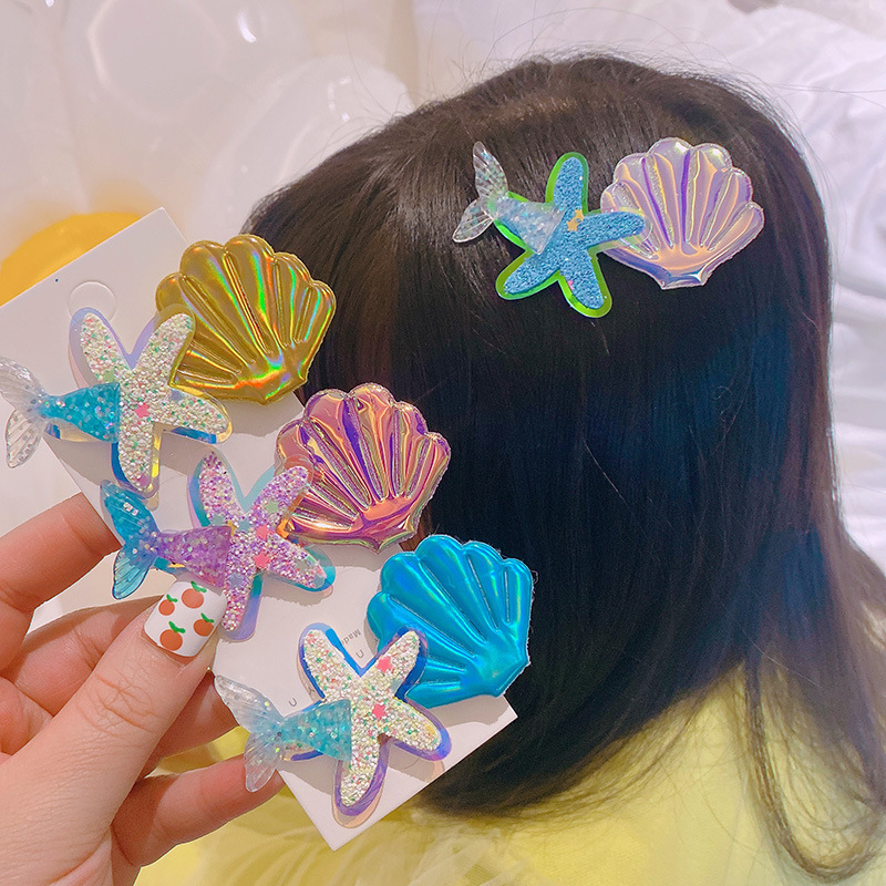 春夏 キッズ用 ガールズ ヘアクリップ ヘアピン 海洋 アクリル ヒトデ貝殻 人魚姫 マーメイド スパンコール