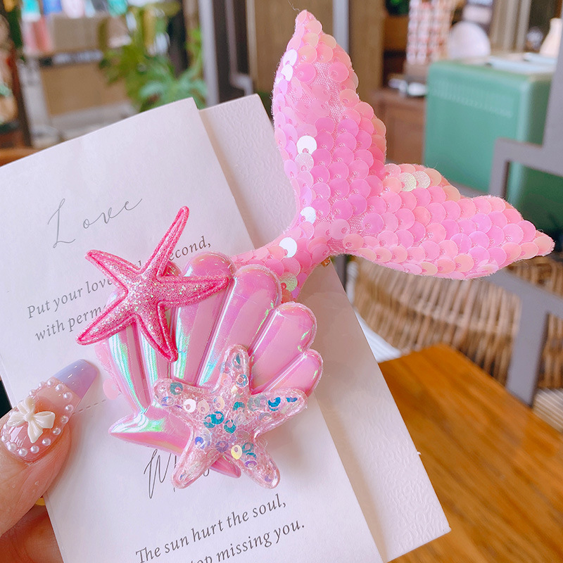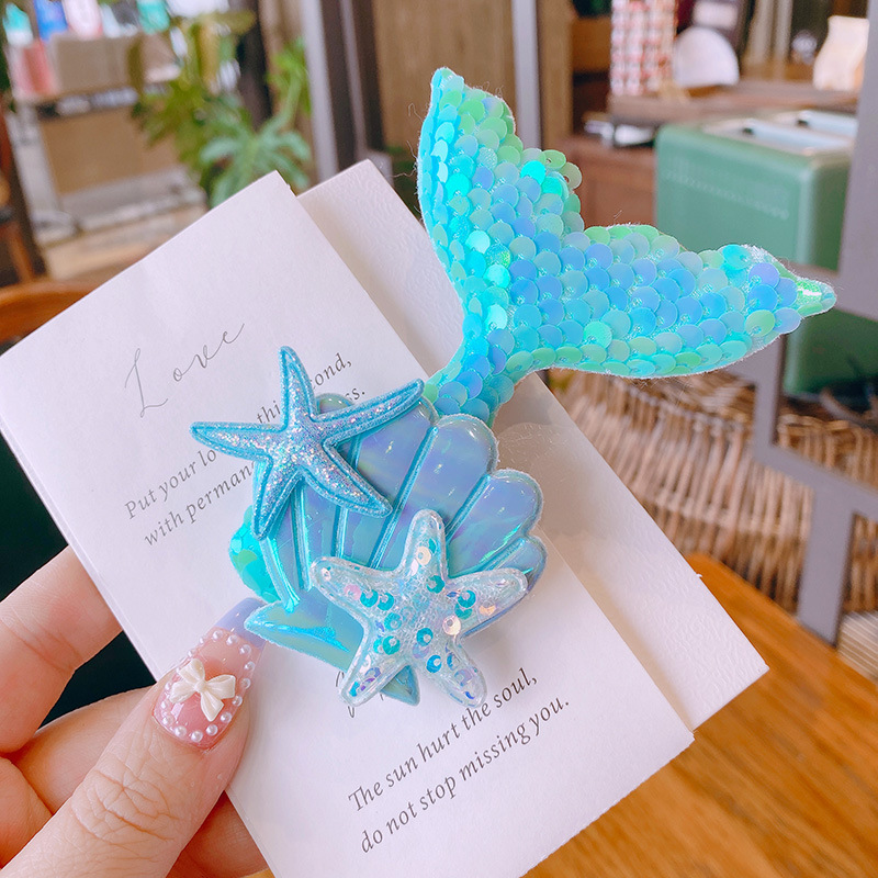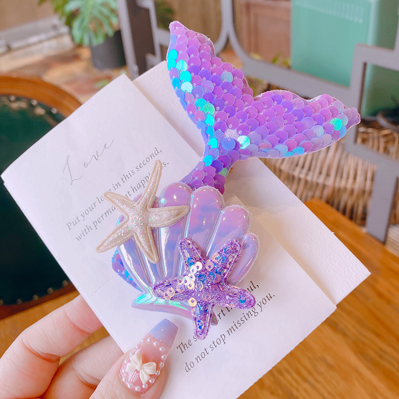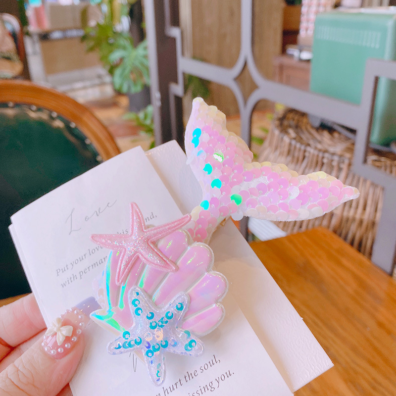 春夏 キッズ用 ガールズ ヘアクリップ ヘアピン 海洋 アクリル ヒトデ貝殻 人魚姫 マーメイド スパンコール
