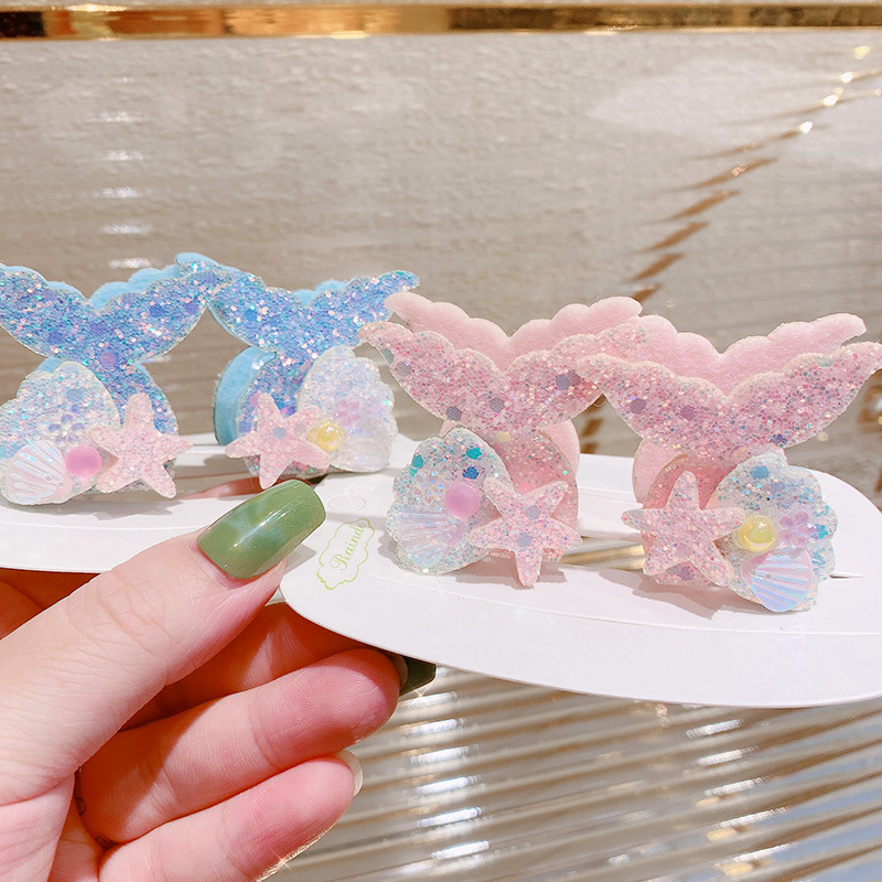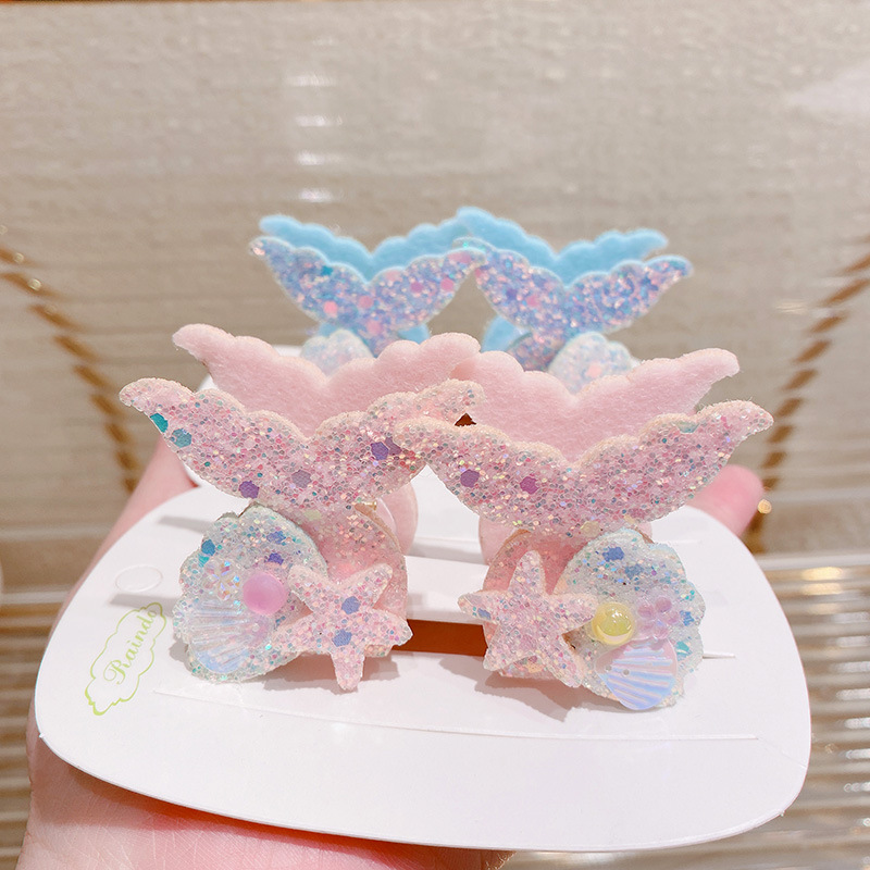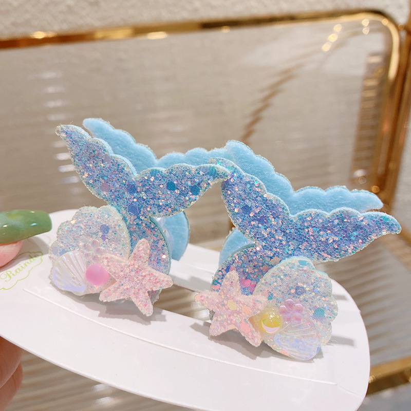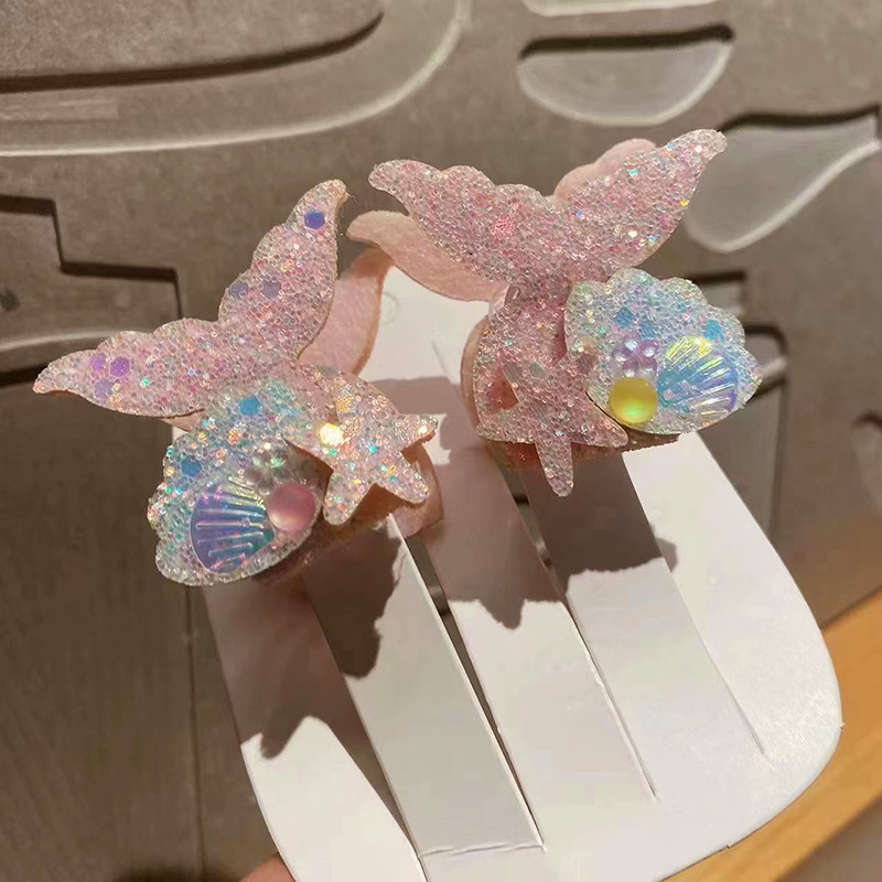 春夏 キッズ用 ガールズ ヘアクリップ バンスクリップ 海洋 ヒトデ貝殻パール 人魚姫 マーメイド キラキラ