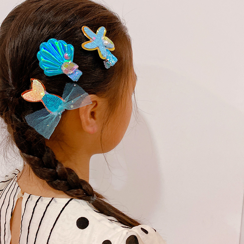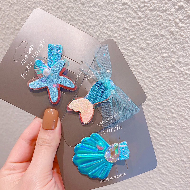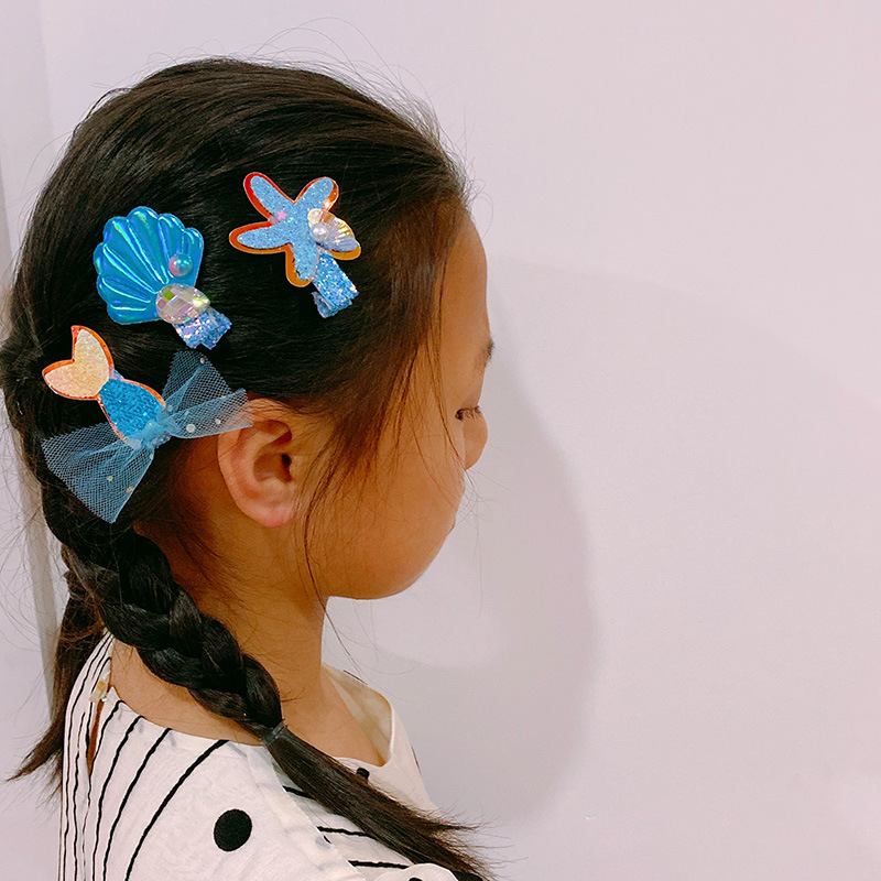 ハワイ 春夏 キッズ用 ガールズ ヘアピン ヘアアクセサリー 海洋 ヒトデ貝殻サザエ マーメイド キラキラ