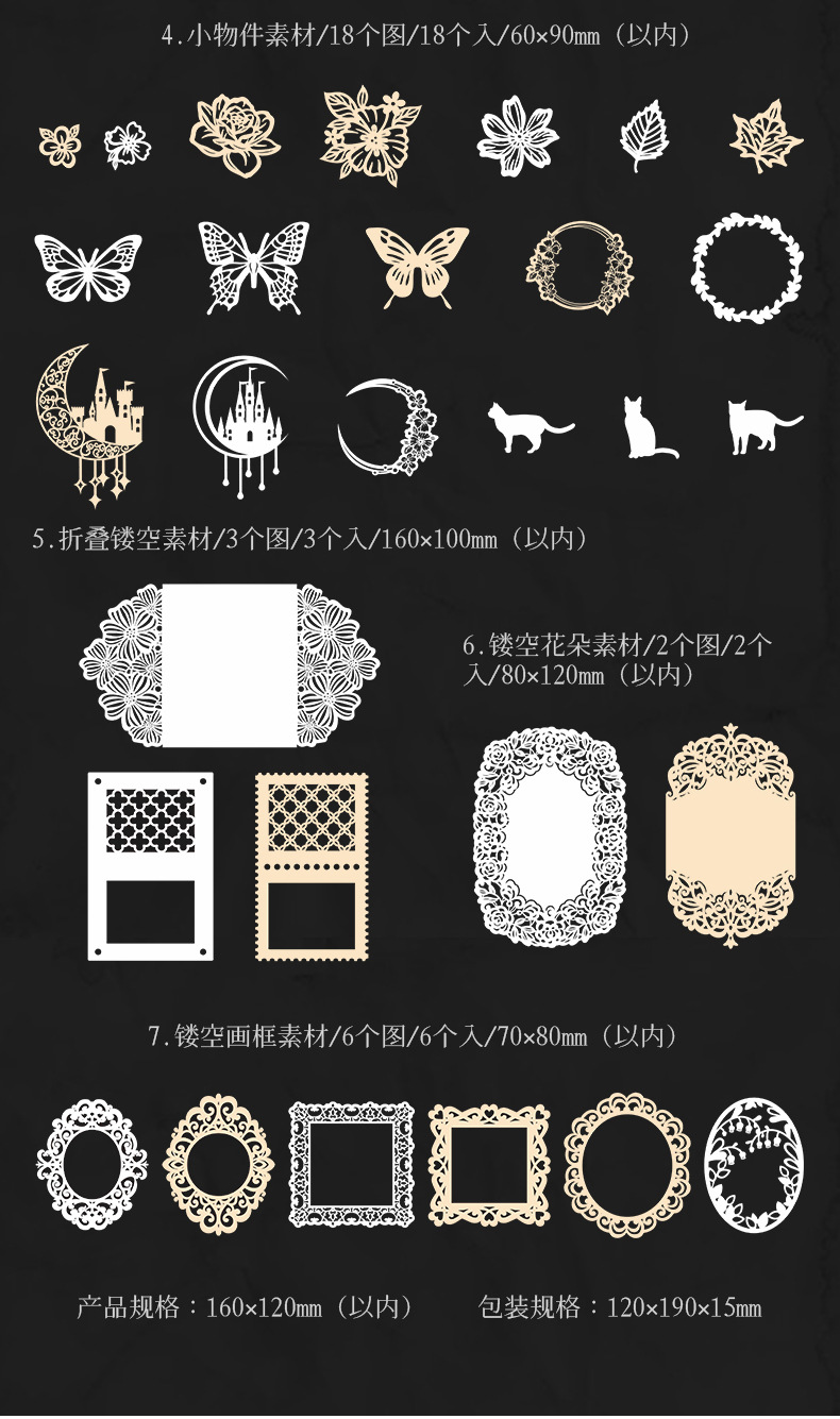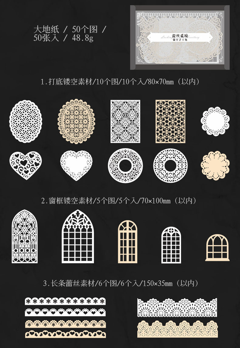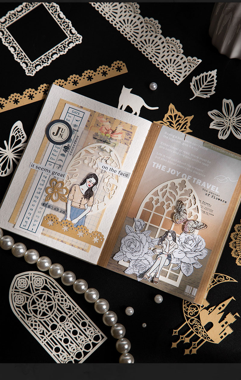 カフェ風 素材紙メモ紙 アンティーク ラベル レース 猫キャット 植物花葉蝶 幾何学 ハート 50枚入