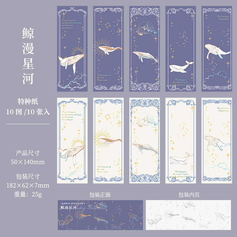 インテリア メモペーパー 素材紙カード ブックマーク アンティーク しおり栞 植物花葉蝶 海洋生物鯨 10枚入