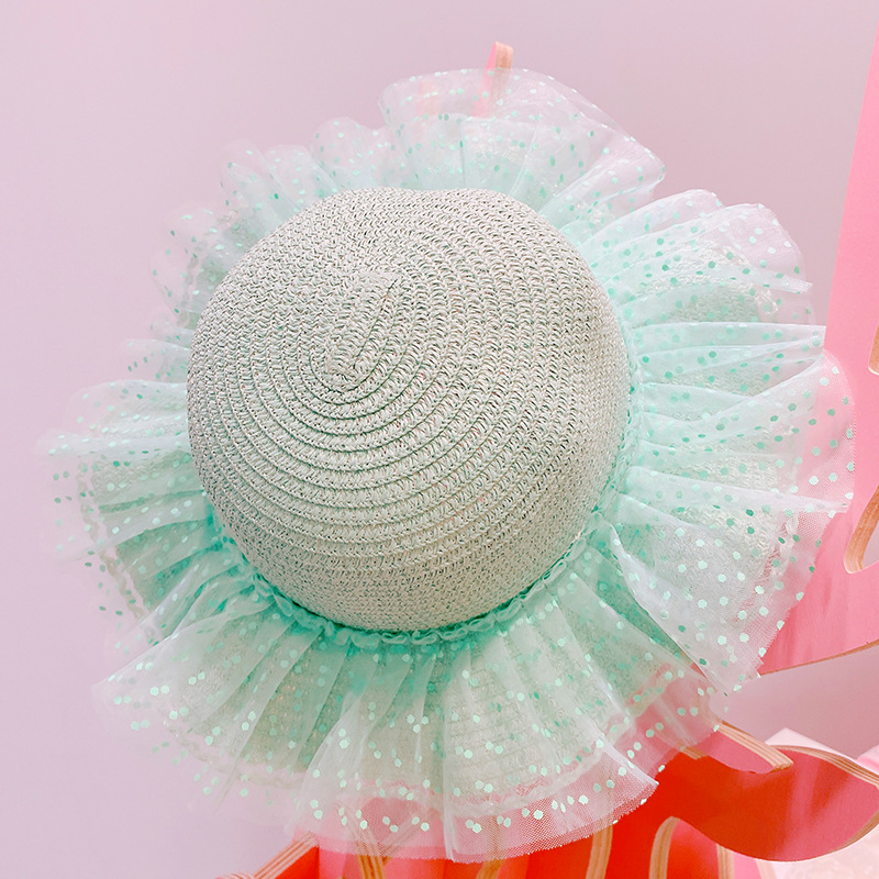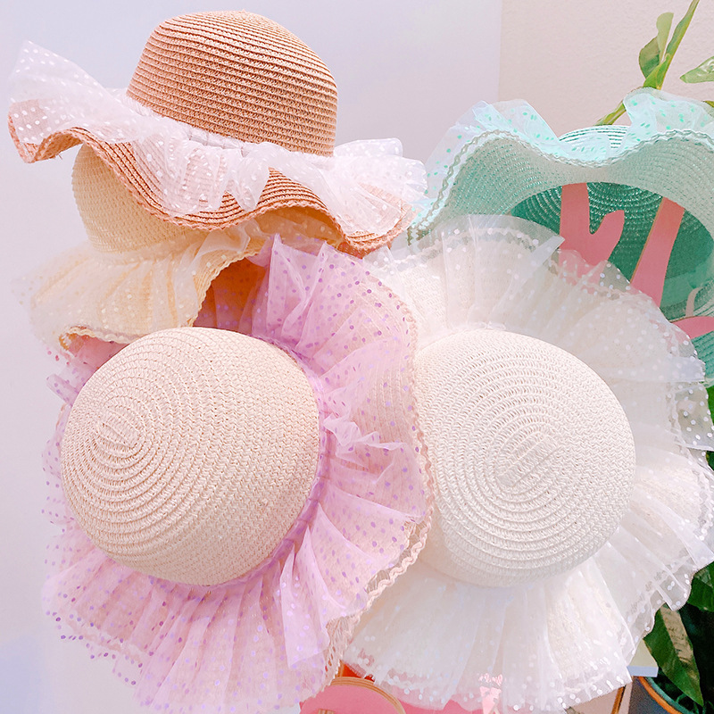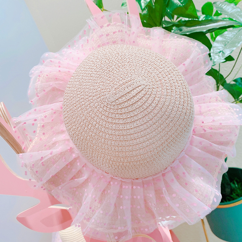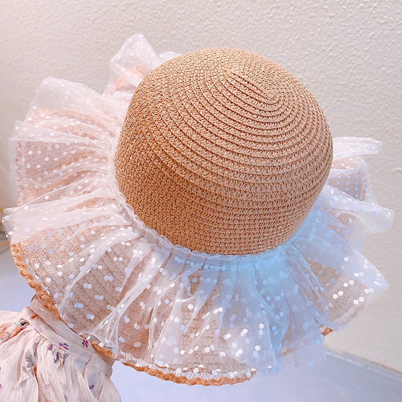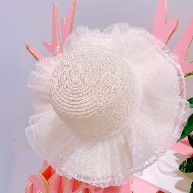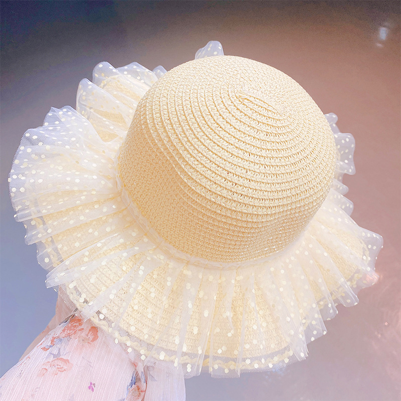 現在カテゴリ:全て商品 > ハワイ 春夏 キッズ少女 ストローハット 麦わら帽子 日焼け止め フリル 草編み ビーチ海 ドット柄 52cm