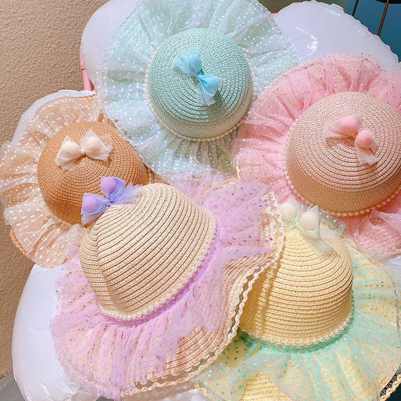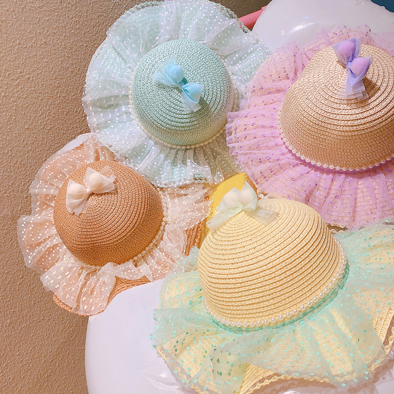 現在カテゴリ:全て商品 > ハワイ 春夏 キッズ少女 ストローハット 麦わら帽子 日焼け止め リボン 草編み ビーチ海 ドット柄 フリル