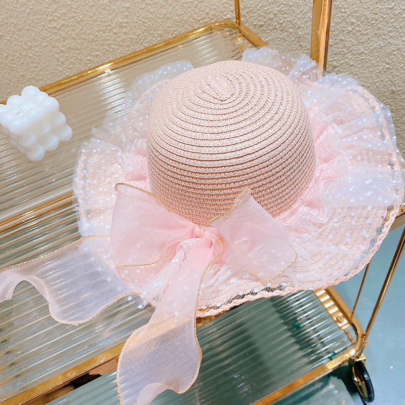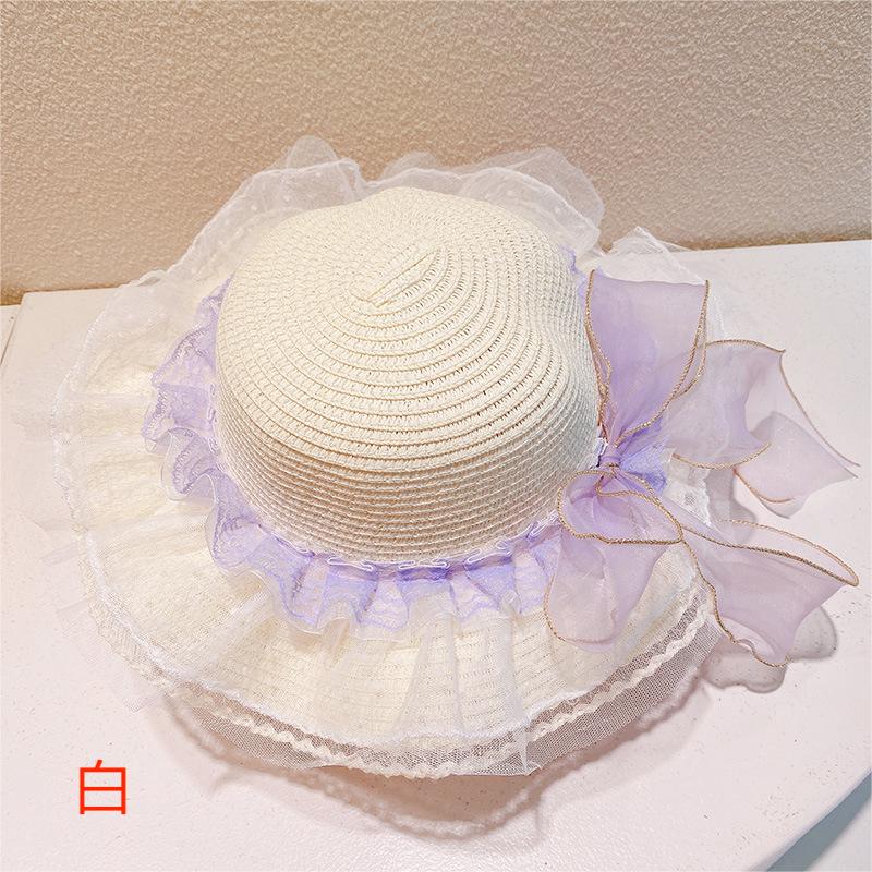 現在カテゴリ:全て商品 > ハワイ 春夏 キッズ少女 ストローハット 麦わら帽子 日焼け止め リボン 草編み ビーチ海 花柄レース フリル
