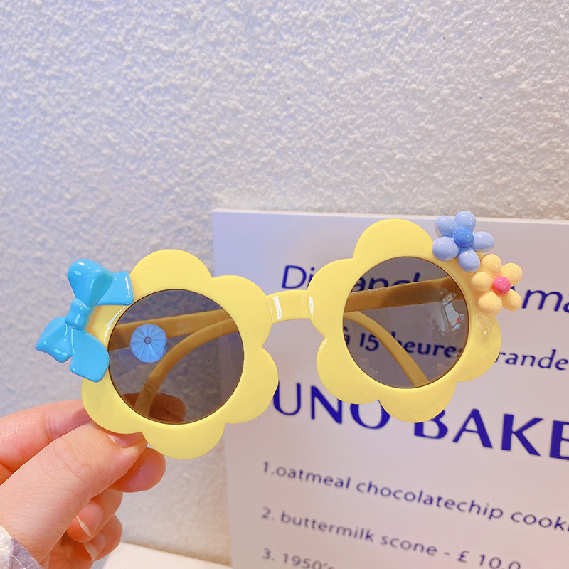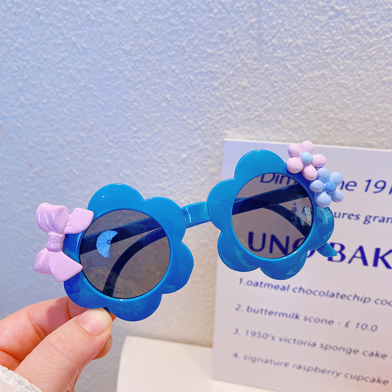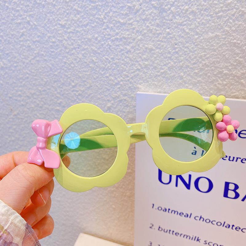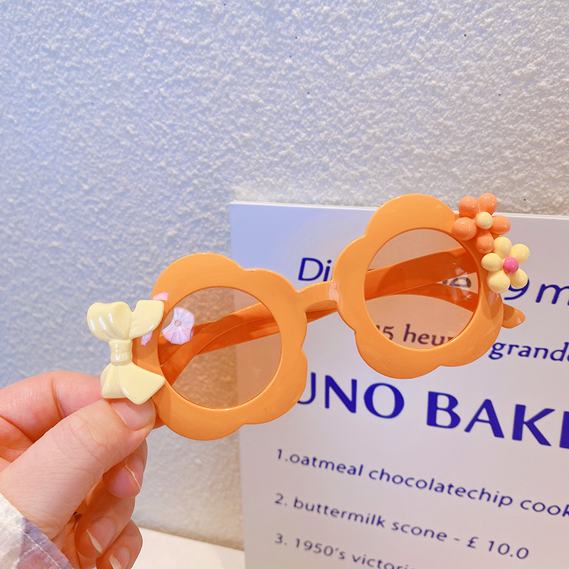 お勧め 春夏 キッズ UVカット 子供用フレーム メガネ 紫外線防止 サングラス 日焼け止め 花フラワー リボン