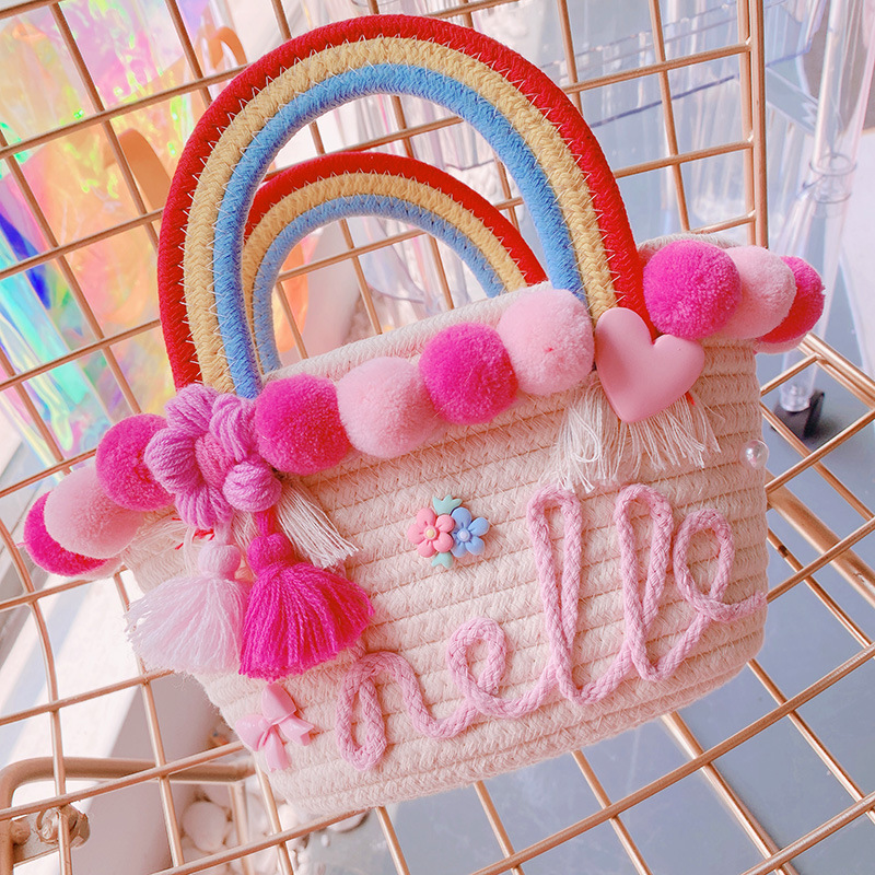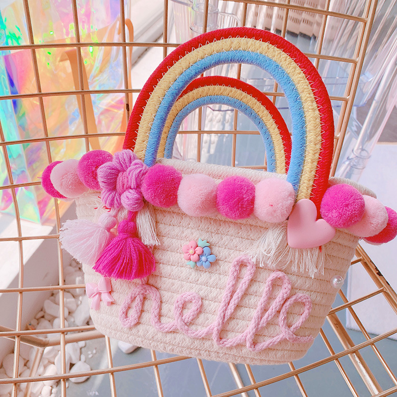 現在カテゴリ:全て商品 > 春夏 親子帽子 子供 かごバッグ 編みバッグ ストローハット 麦わら帽子 ハンドバッグ ビーチ海 ポンポン