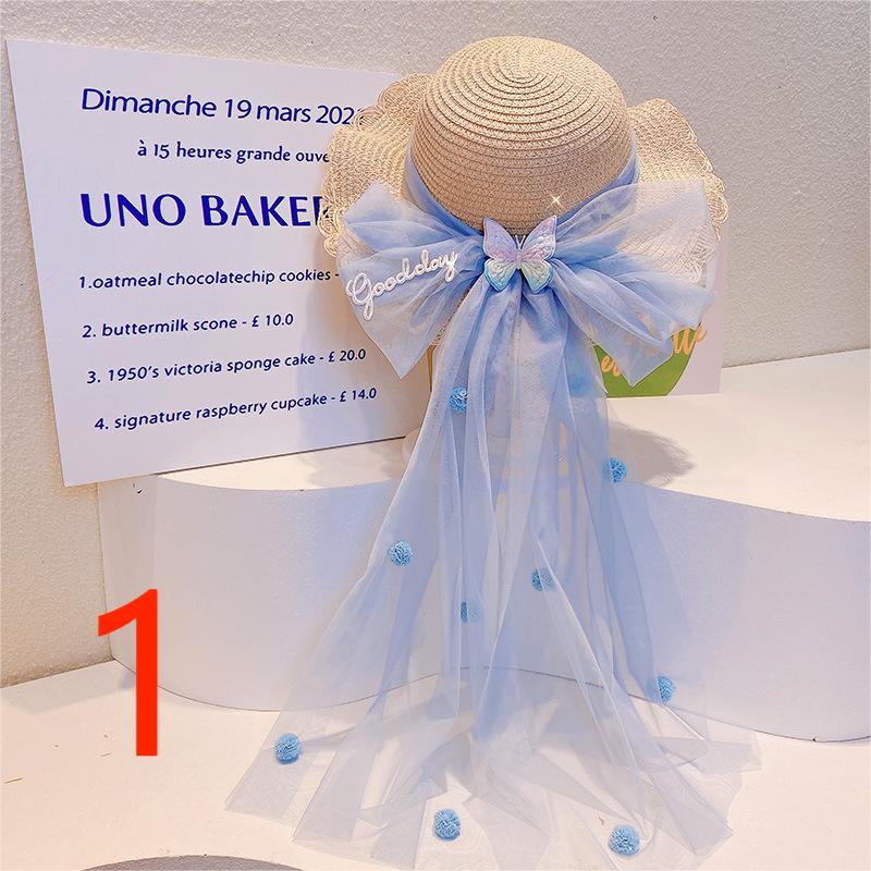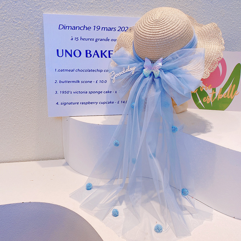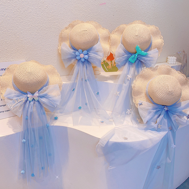 ハワイ 春夏 キッズ子供 ストローハット 麦わら帽子 日焼け止め リボン 草編み ビーチ海 ポンポン ヒトデ