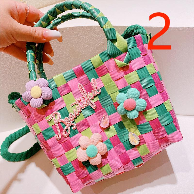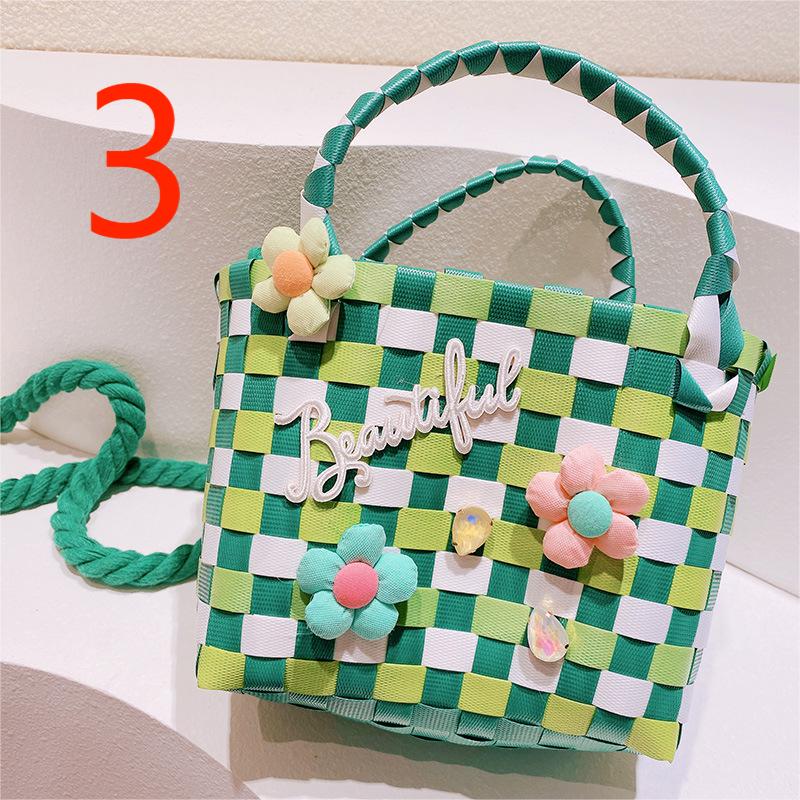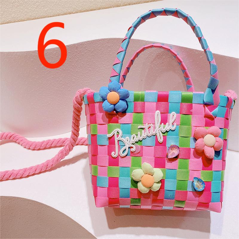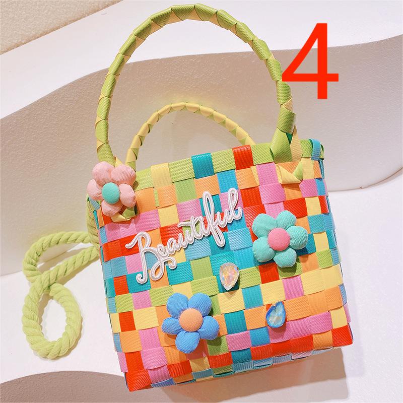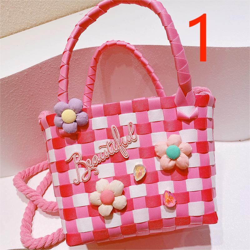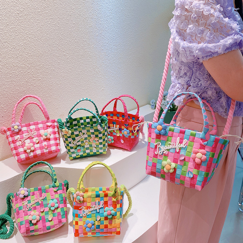 春夏 キッズ子供 ポシェット かごバッグ 編みバッグ 小花 チェック柄 ハンドバッグ ショルダーバッグ