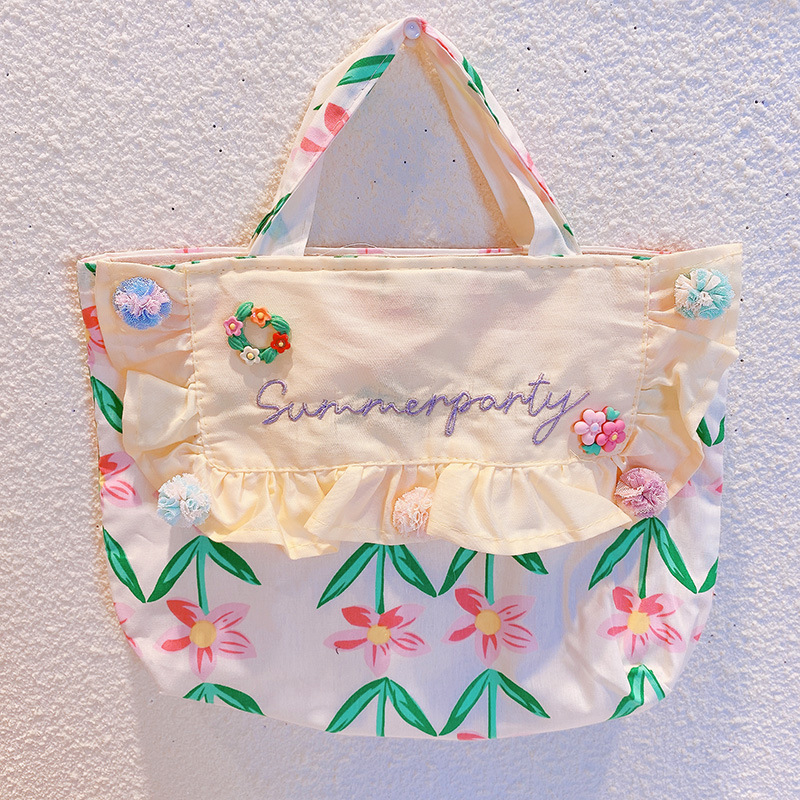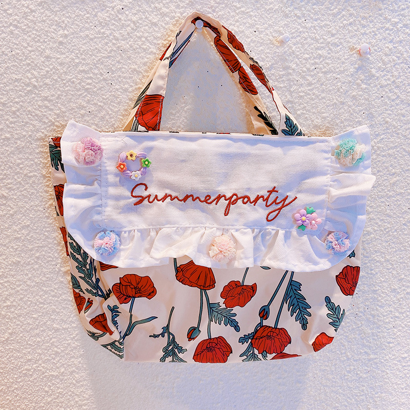 現在カテゴリ:全て商品 > お勧め 春夏 大人も子供 ガールズ キッズ 収納バッグ ハンドバッグ 花柄 フリル 手提げバッグ