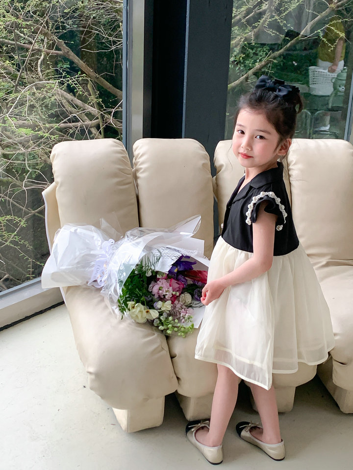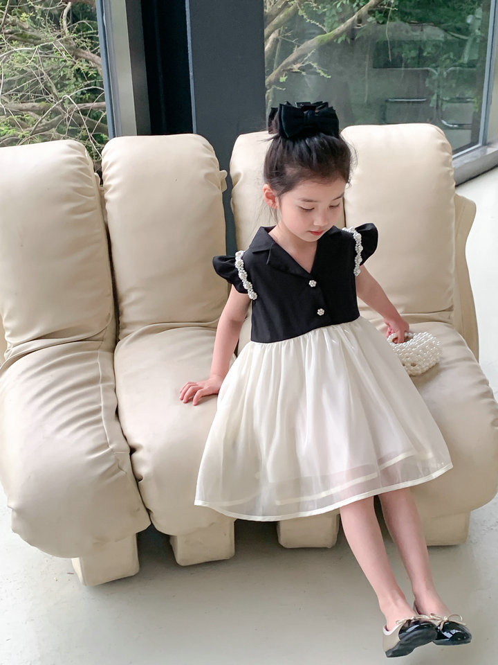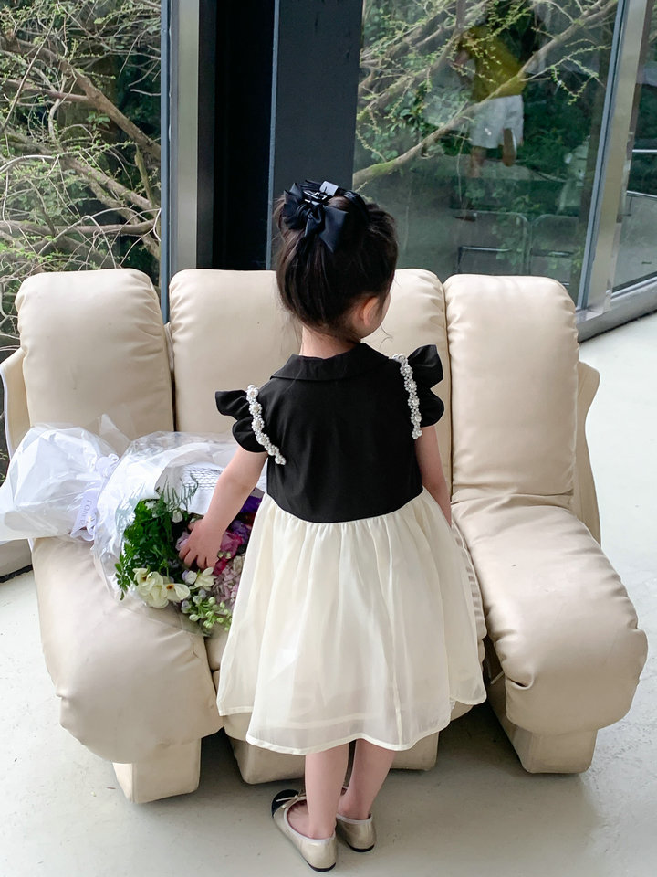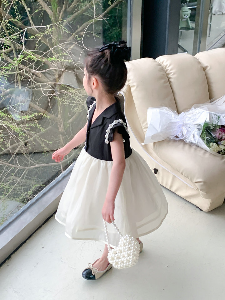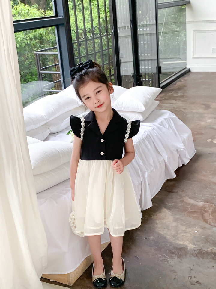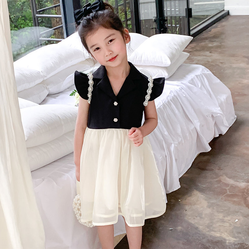 お勧め 春夏 子供服 ガール パール フリル シフトドレス ワンピース ノースリープ ワンピ 5-13