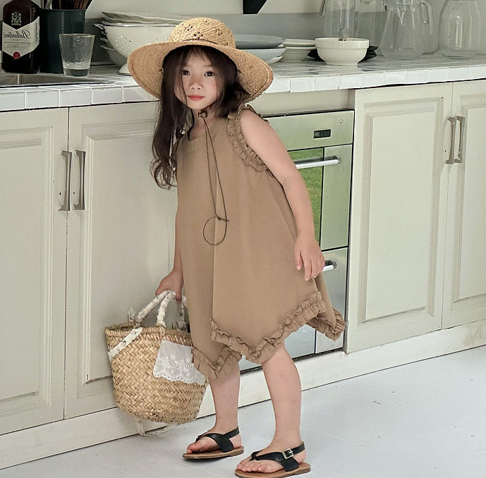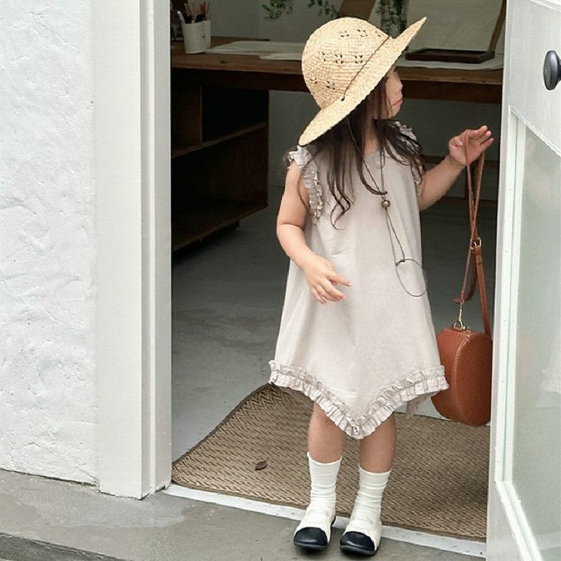 お勧め 春夏 子供服 ガール 無地 フリル シフトドレス ワンピース ノースリープ ワンピ 5-13