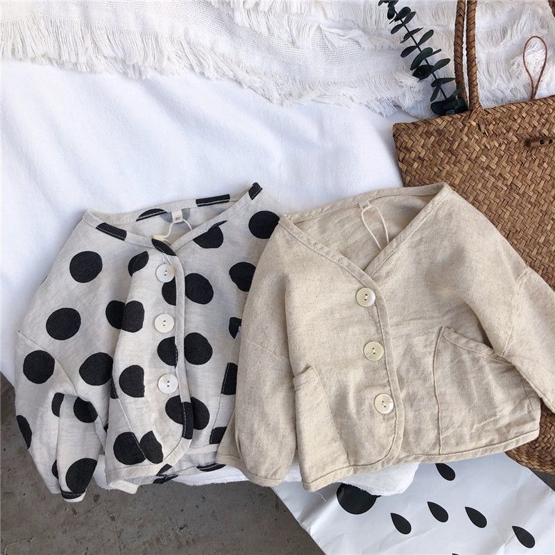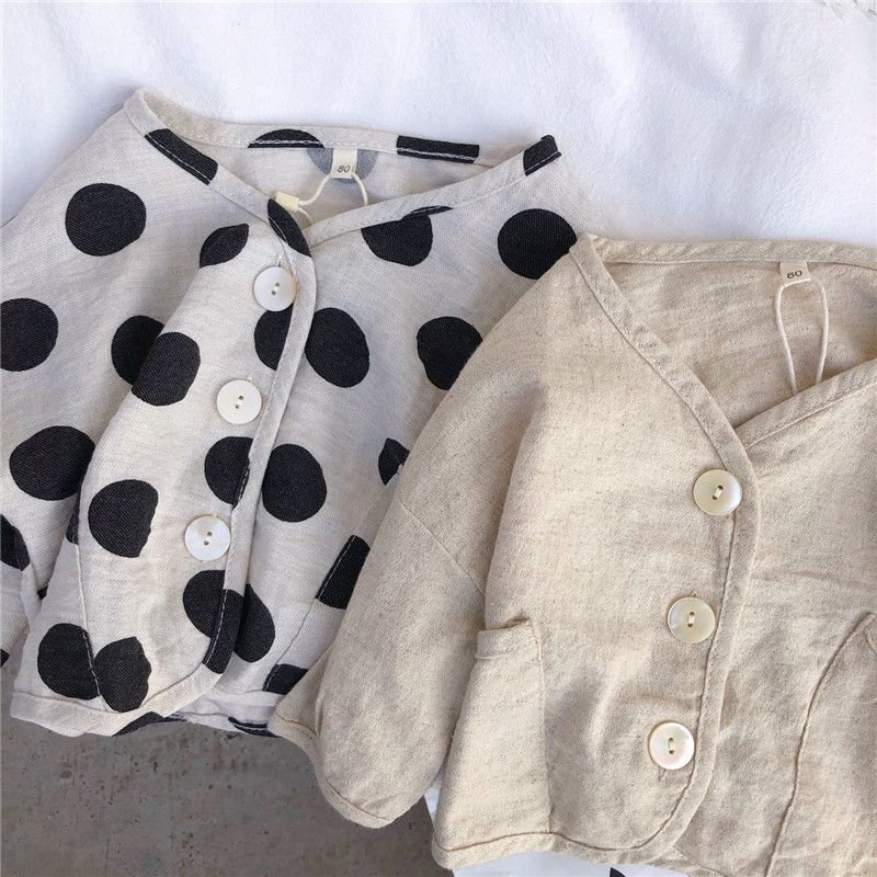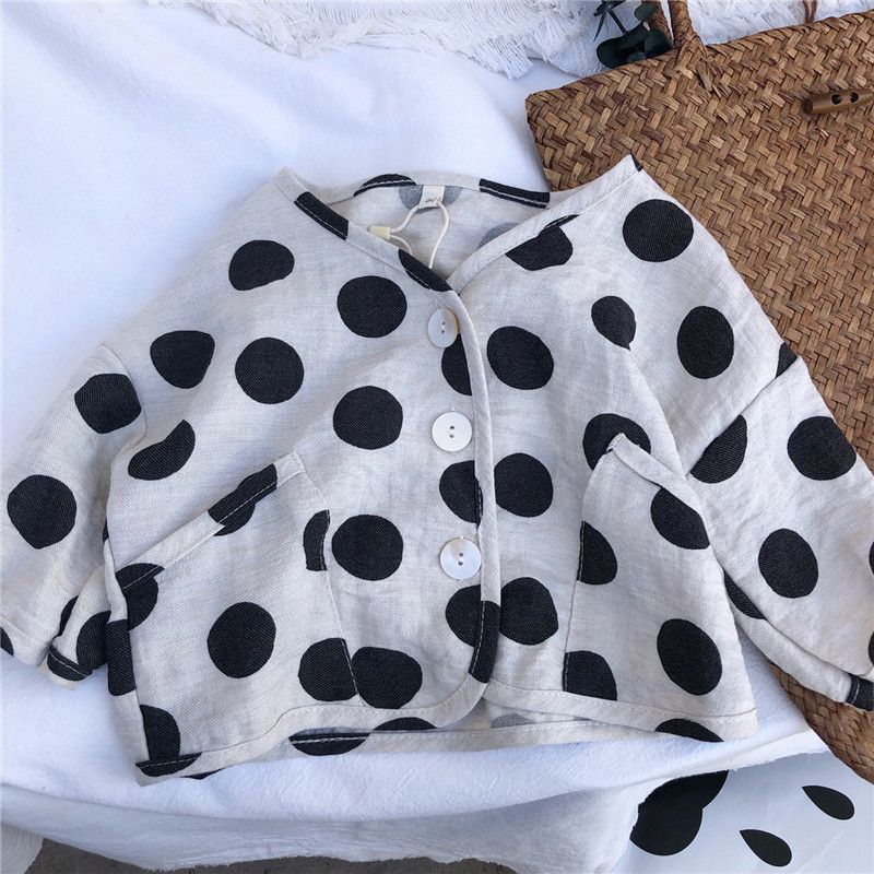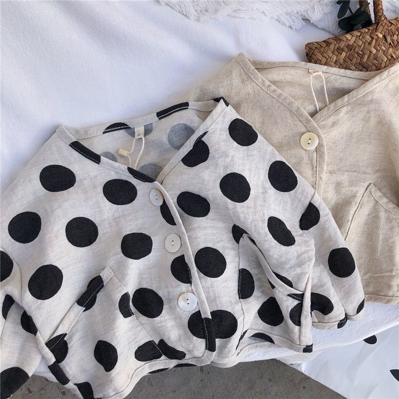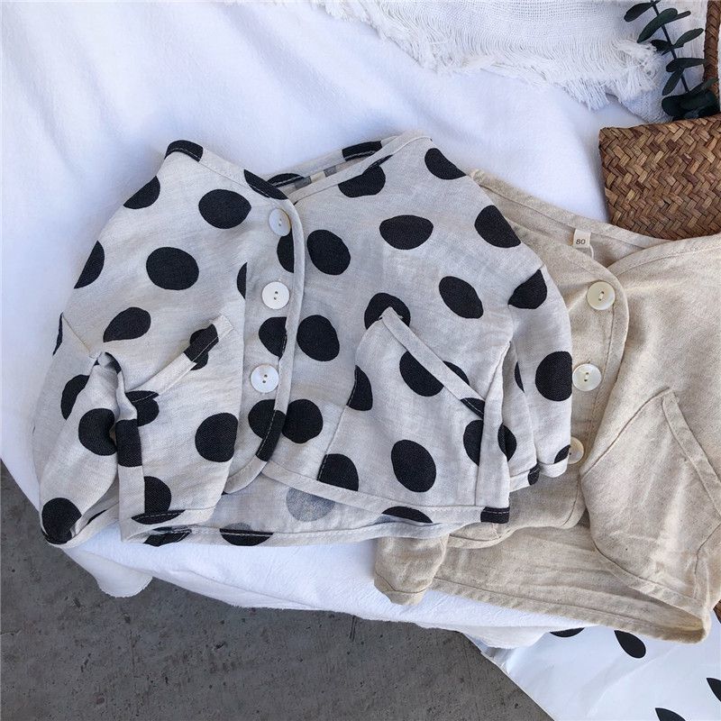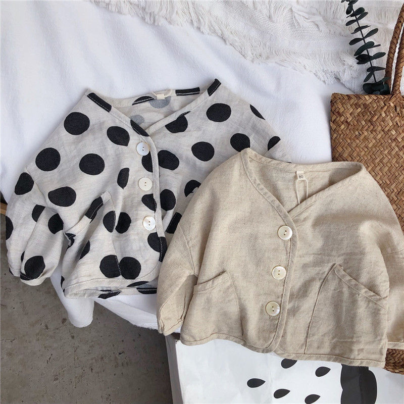 お勧め 春夏 ユニセックス キッズ 薄いジャケット 日焼け止め 紫外線対策上着 ドット柄 麻綿 80-130