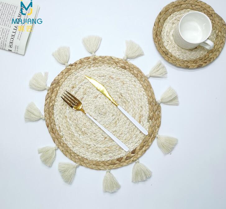 新品★草編みクッション&コースター★