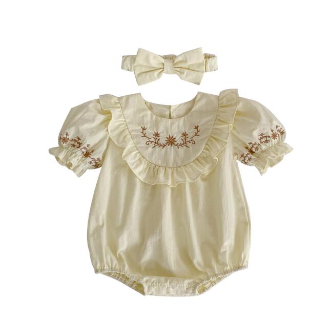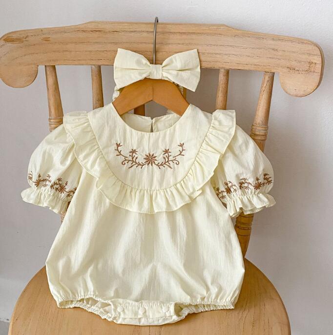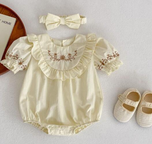 子供服★ロンパース+ヘアバンド★半袖★韓国風子供服★ベビー★刺繍★66-90CM