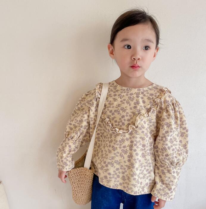 子供服★トップス★長袖シャツ★韓国風子供服★キッズ女の子★花柄★2色★80-130CM