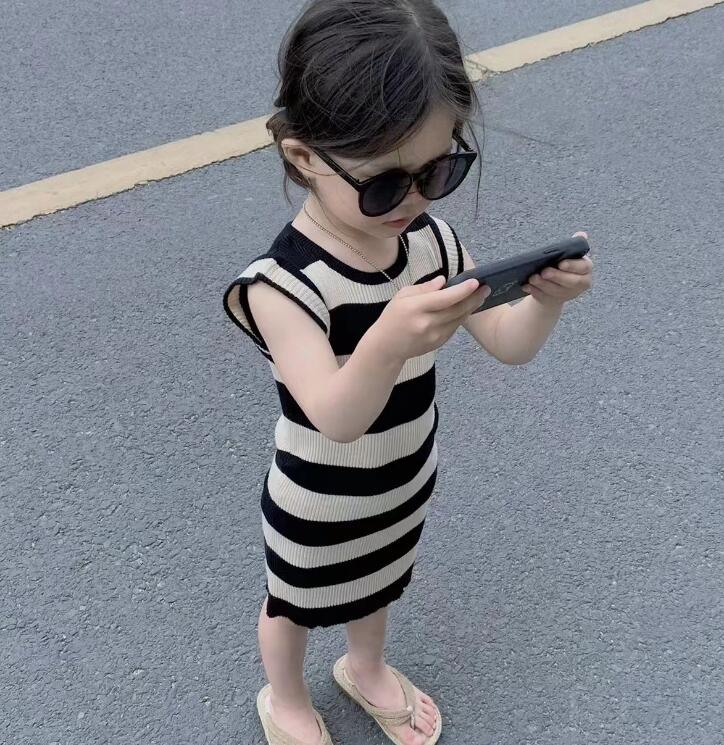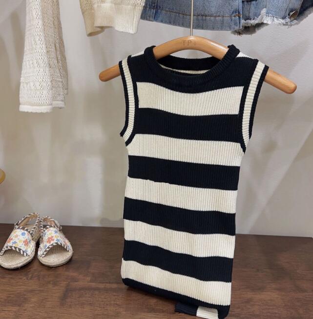 子供服★ワンピース★ノースリーブ★韓国風子供服★キッズ女の子★ストライプ★5-17#
