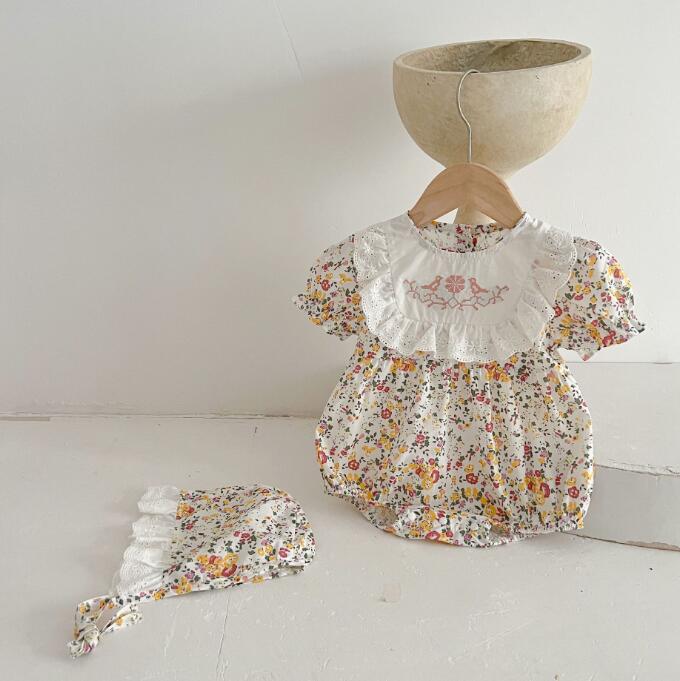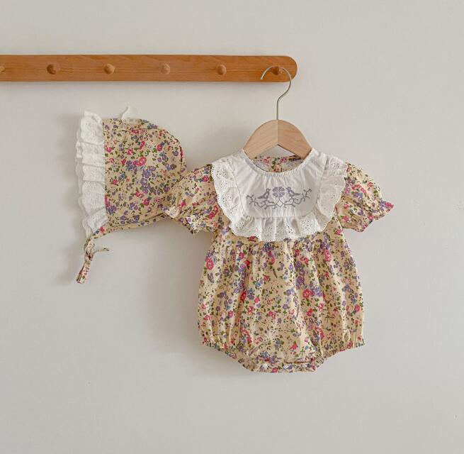 子供服★ロンパース+帽子★連体服★韓国風子供服★ベビー★花柄★2色★66-100CM