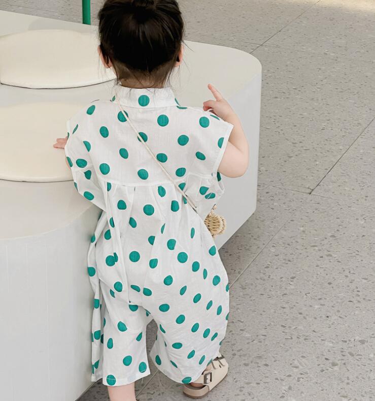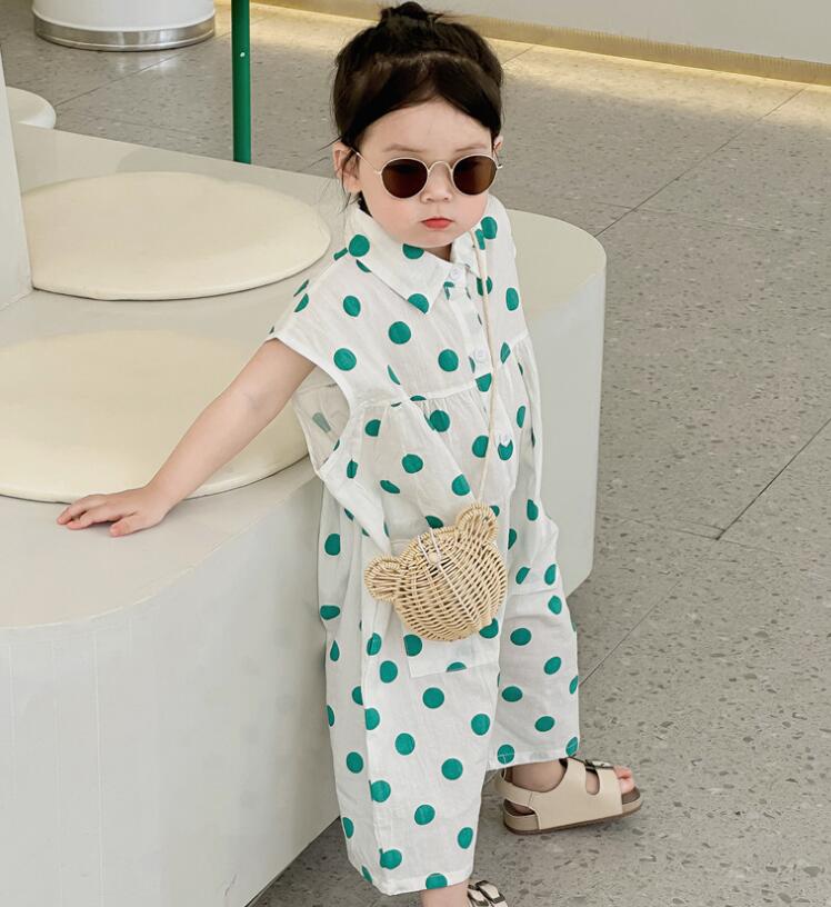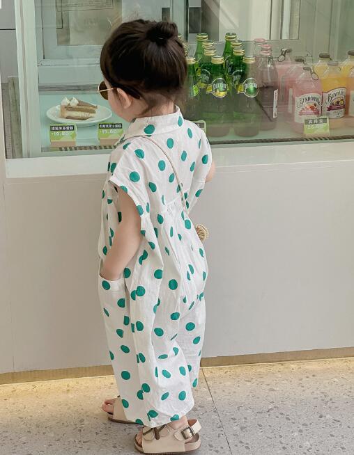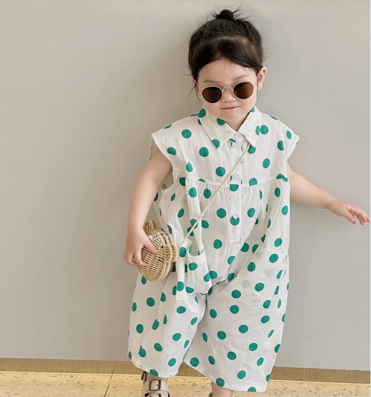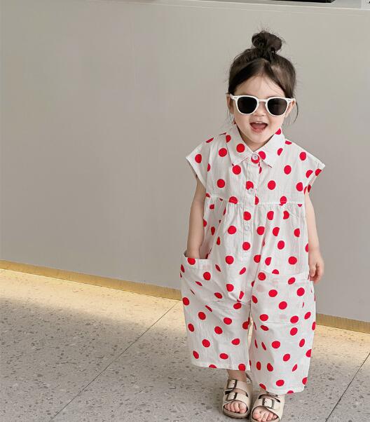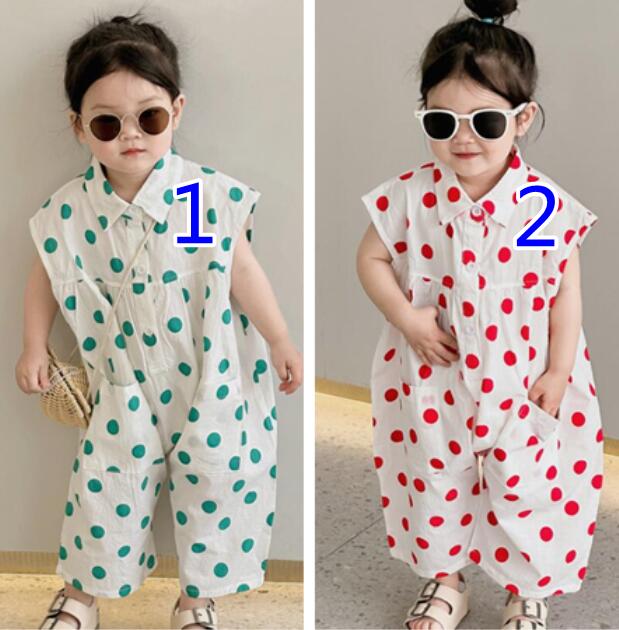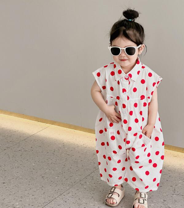 子供服★連体服★韓国風子供服★キッズ女の子★水玉★ノースリーブ★2色★80-130CM
