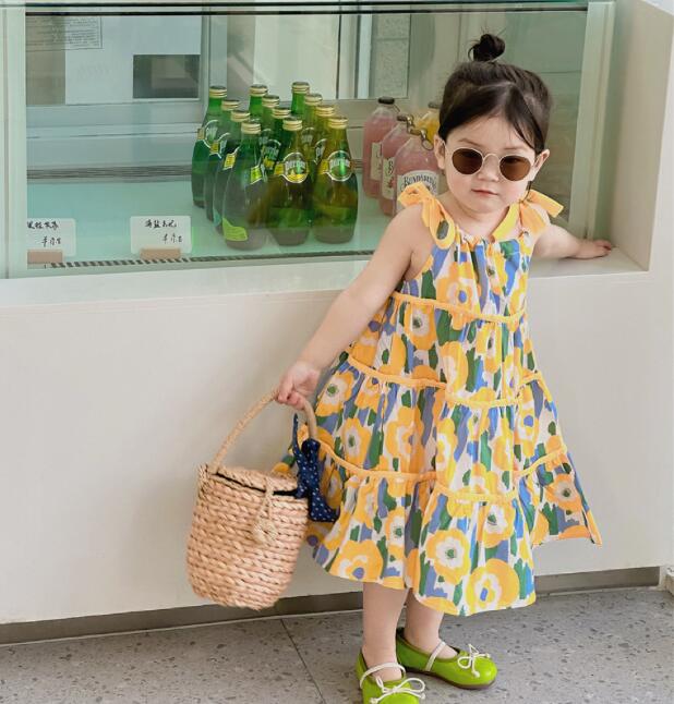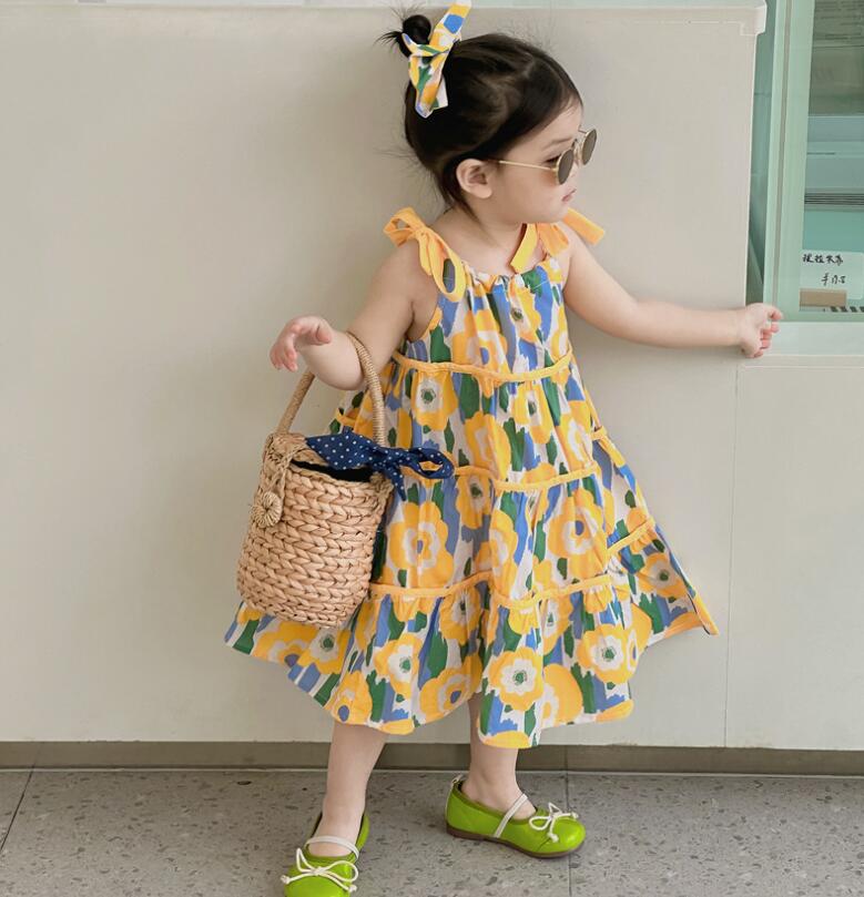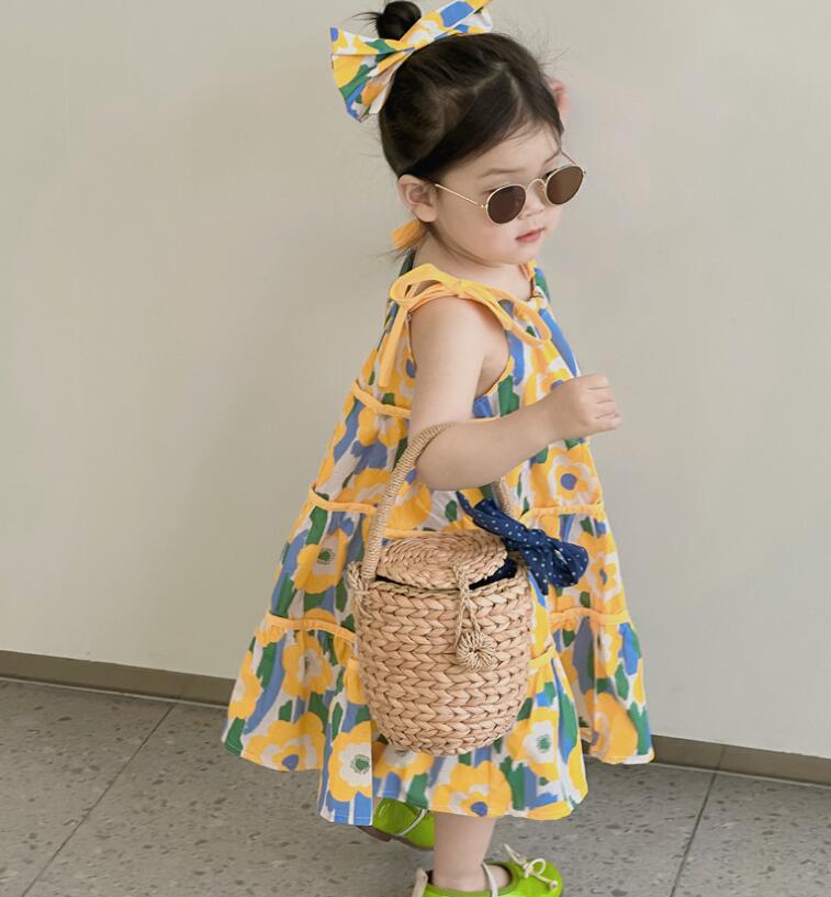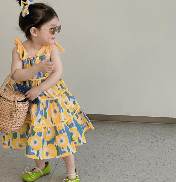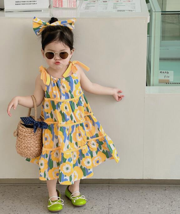 子供服★吊りワンピース+髪飾り★花柄★韓国風子供服★キッズ女の子★90-140CM