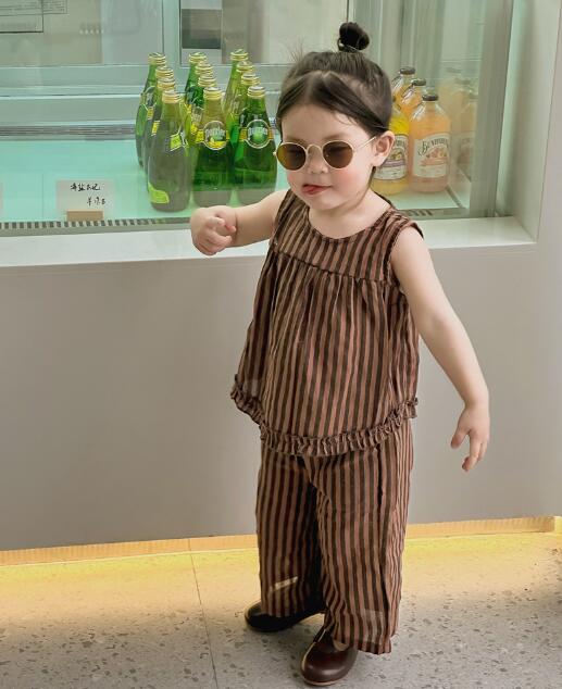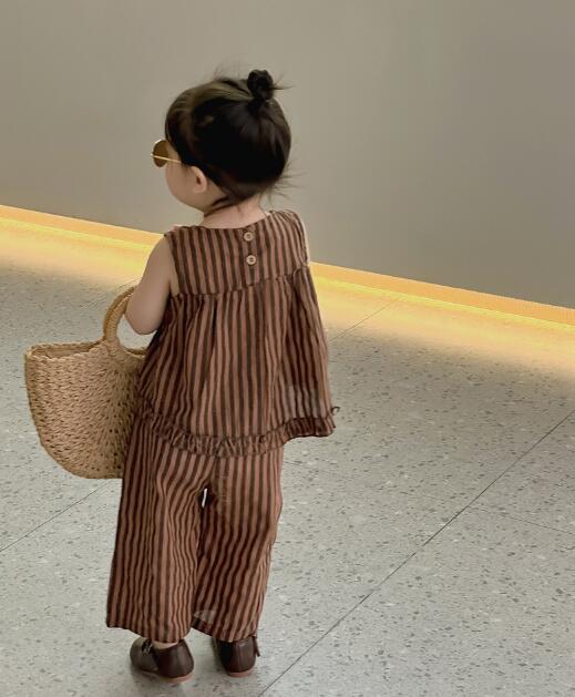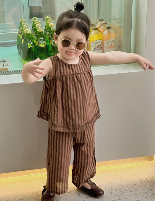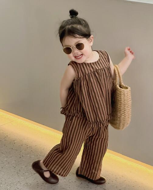 子供服★セットアップ★トップス+ズボン★韓国風子供服★キッズ女の子★袖なし★90-140CM