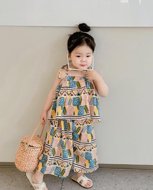 子供服★トップス+ズボン★セットアップ★韓国風子供服★キッズ女の子★袖なし★2色★90-140CM