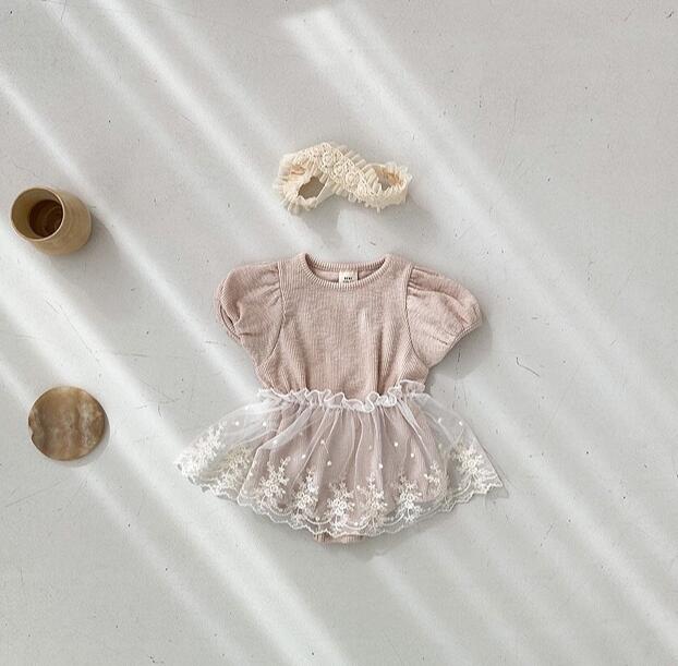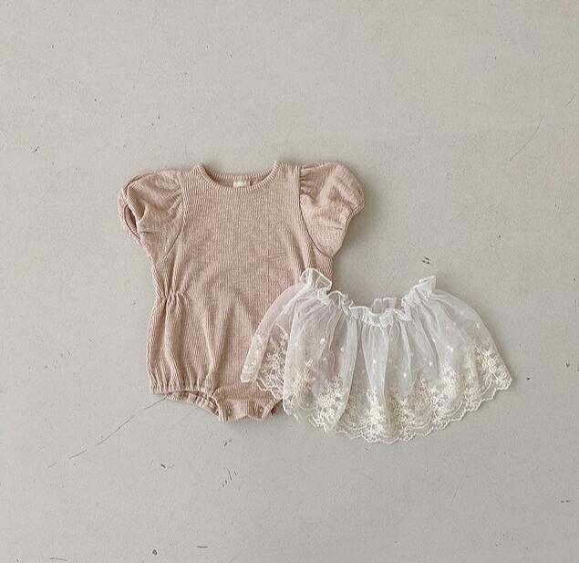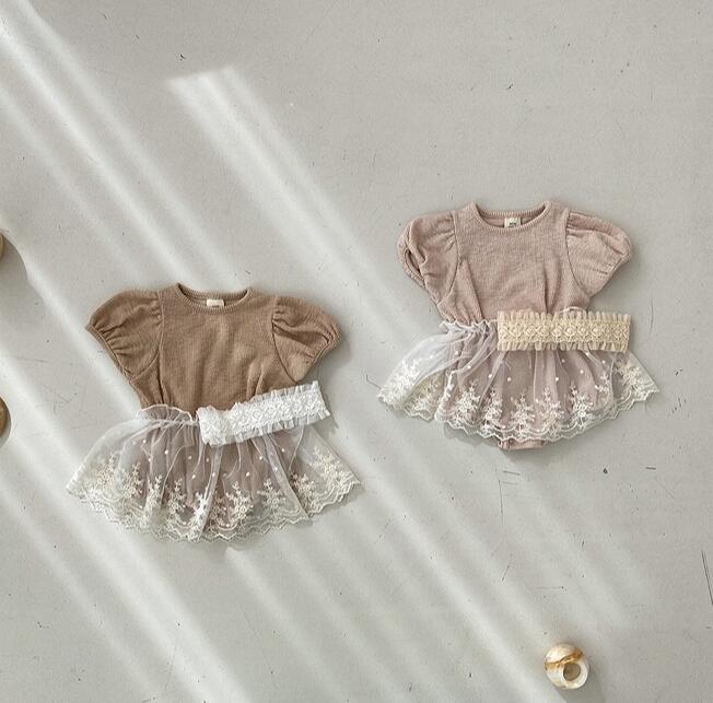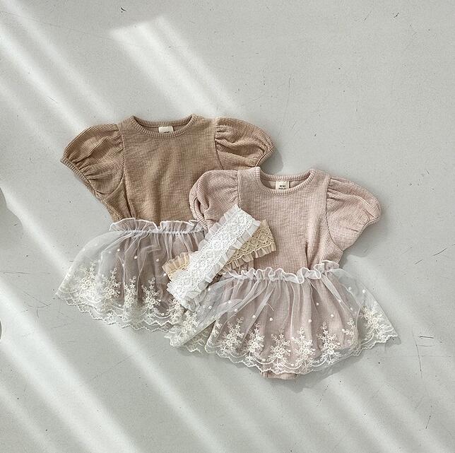 子供服★ロンパース+スカート★セットアップ★韓国風子供服★ベビー★レース★2色★66-90CM