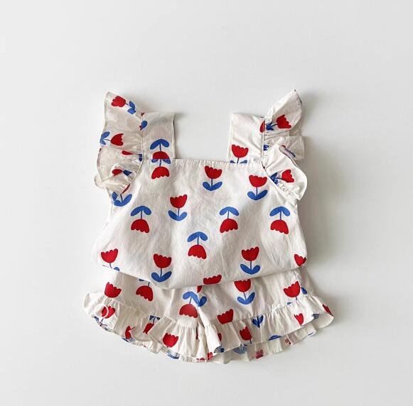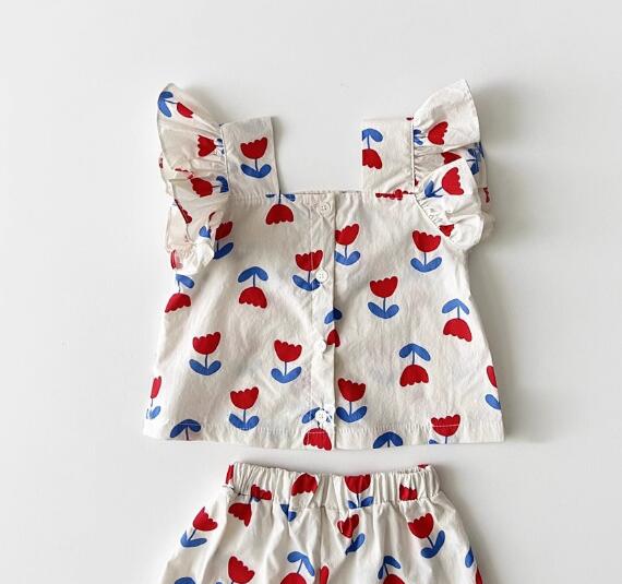 子供服★トップス+パンツ★セットアップ★花柄★韓国風子供服★キッズ女の子★73-120CM