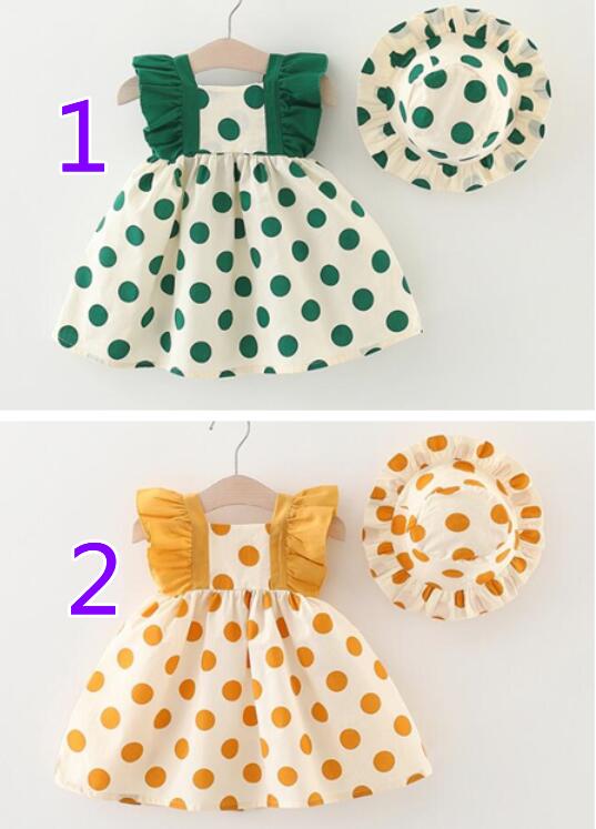 子供服★ワンピース+帽子★韓国風子供服★ベビー★水玉★袖なし★2色★73-100CM