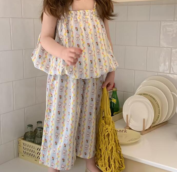 子供服★トップス+ズボン★セットアップ★韓国風子供服★キッズ女の子★袖なし★90-140CM