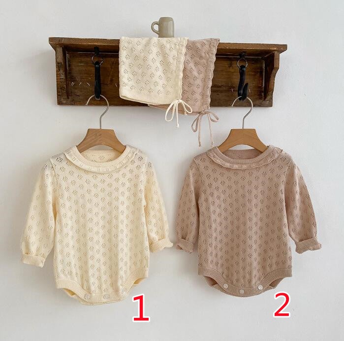 2023年新品★ベビー服 ニットロンパース+帽子★66-100cm★2色