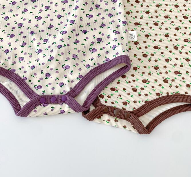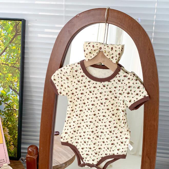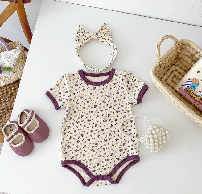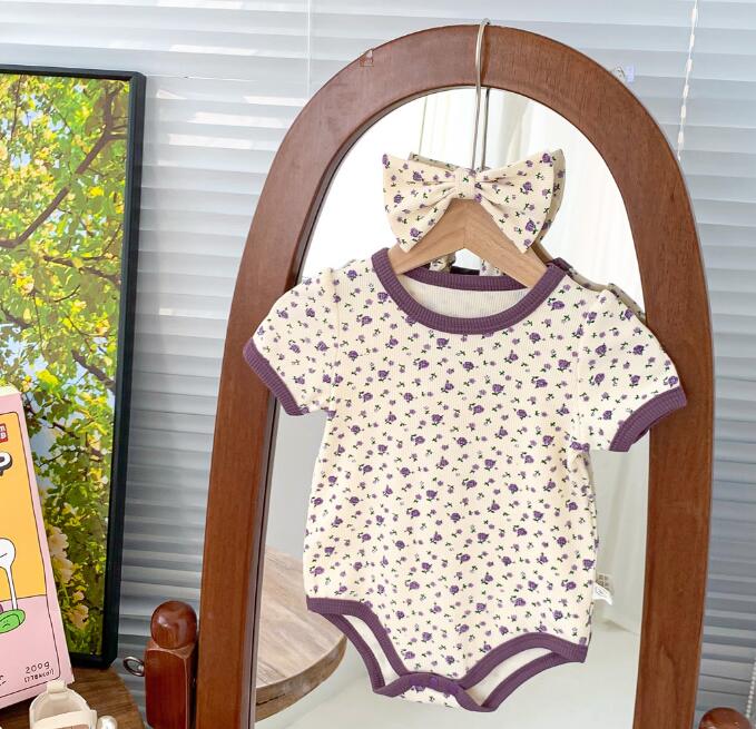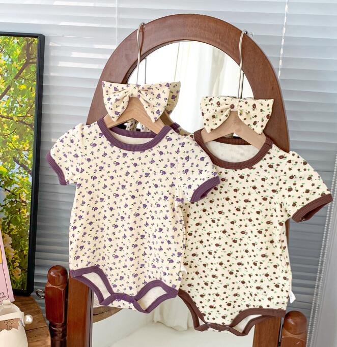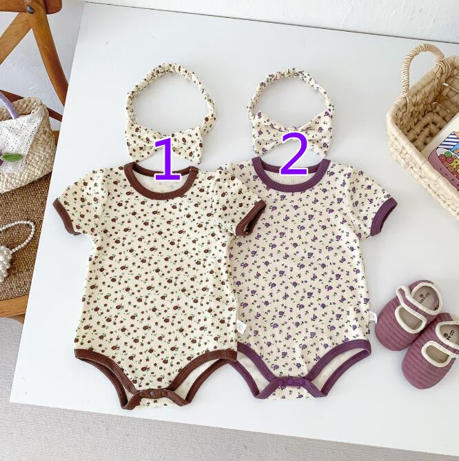 子供服★ロンパース+ヘアバンド★連体服★韓国風子供服★ベビー★花柄★袖なし★2色★66-90CM