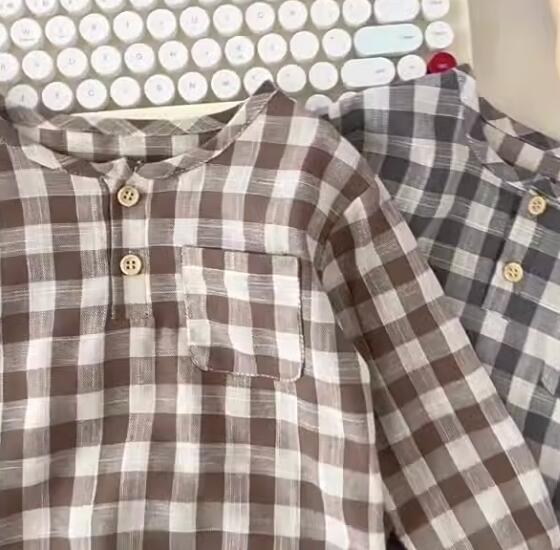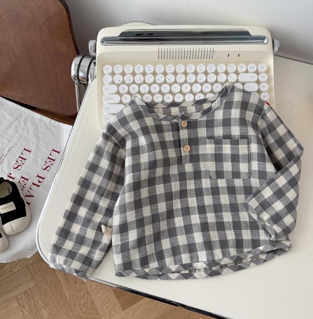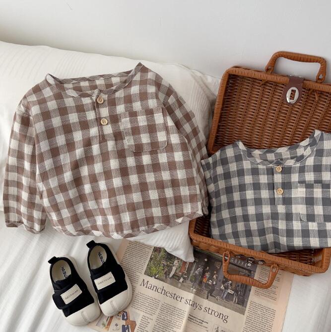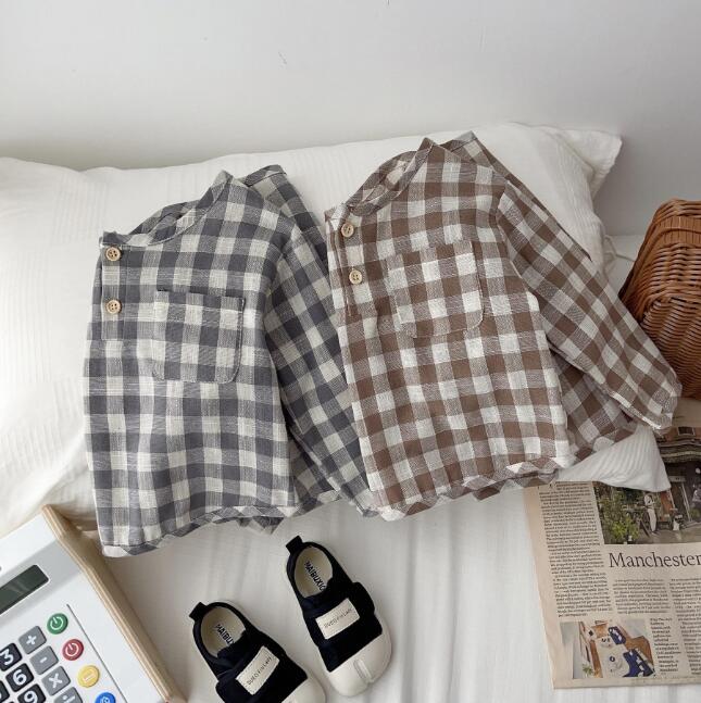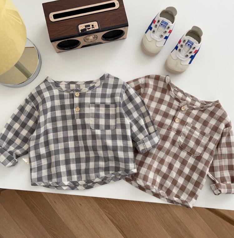 初秋★子供服★ワイシャツ★トップス★韓国風子供服★ベビー★長袖★チェック柄★2色★66-100CM