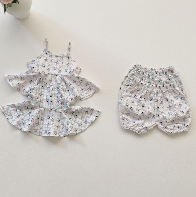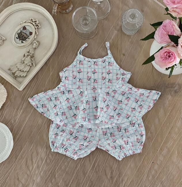 子供服★トップス+パンツ★セットアップ★韓国風子供服★ベビー★花柄★2色★66-100CM