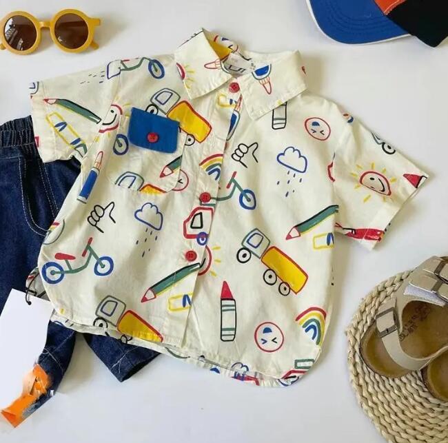 子供服★トップス★ワイシャツ★韓国風子供服★キッズ男の子★半袖★80-130CM