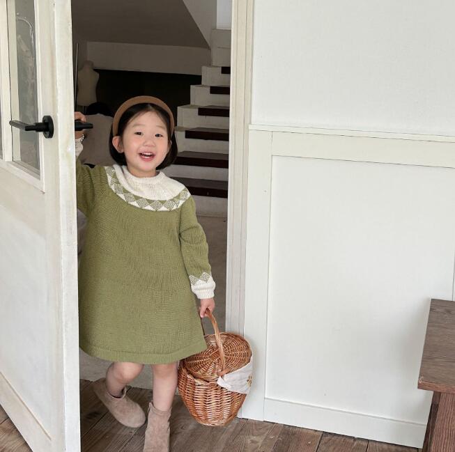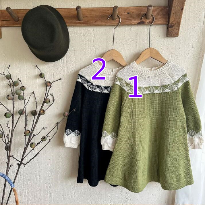 子供服★ニットワンピース★韓国風子供服★キッズ女の子★長袖★2色★90-140CM