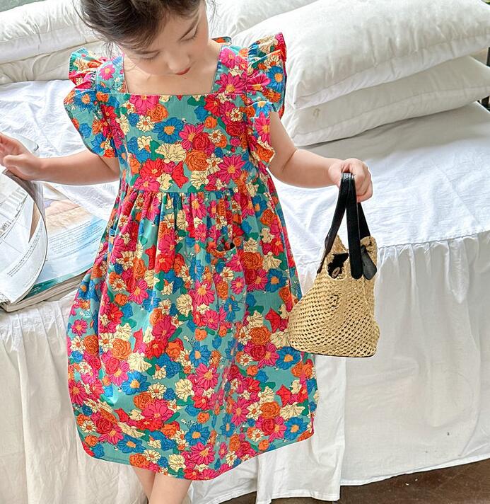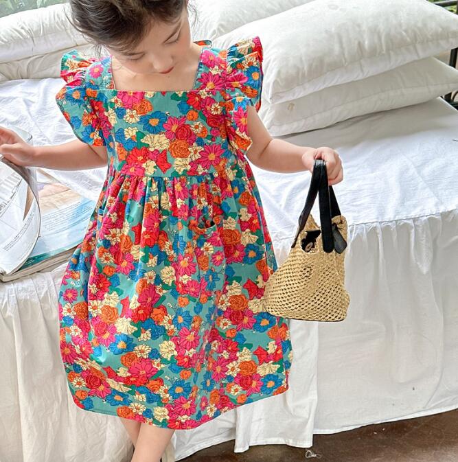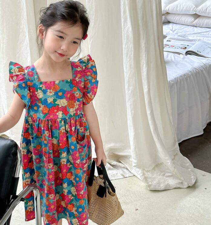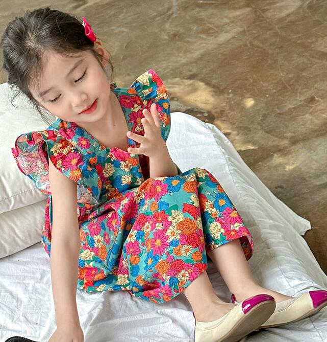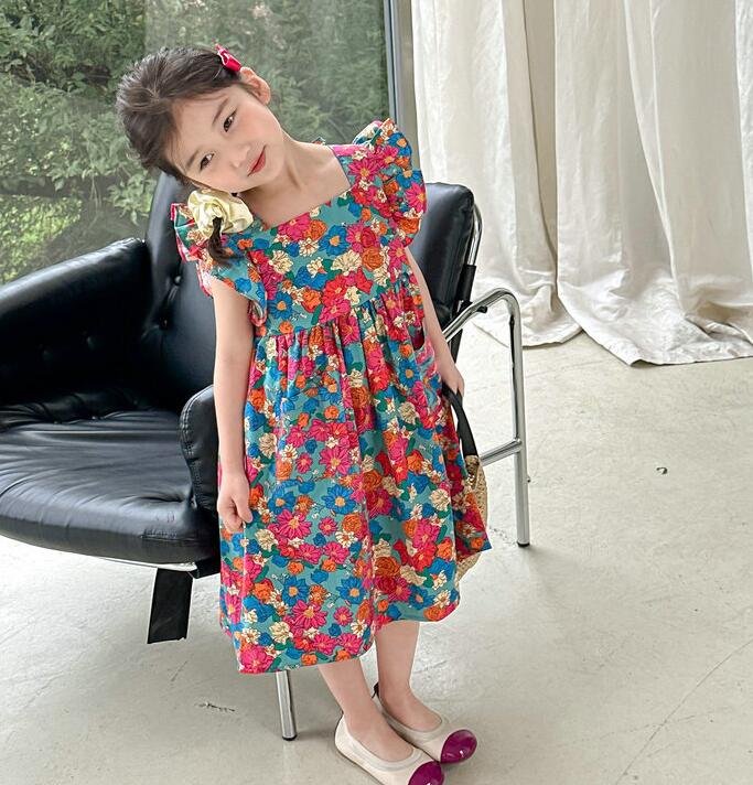 子供服★ワンピース★韓国風子供服★キッズ女の子★花柄★カジュアル★7-17#